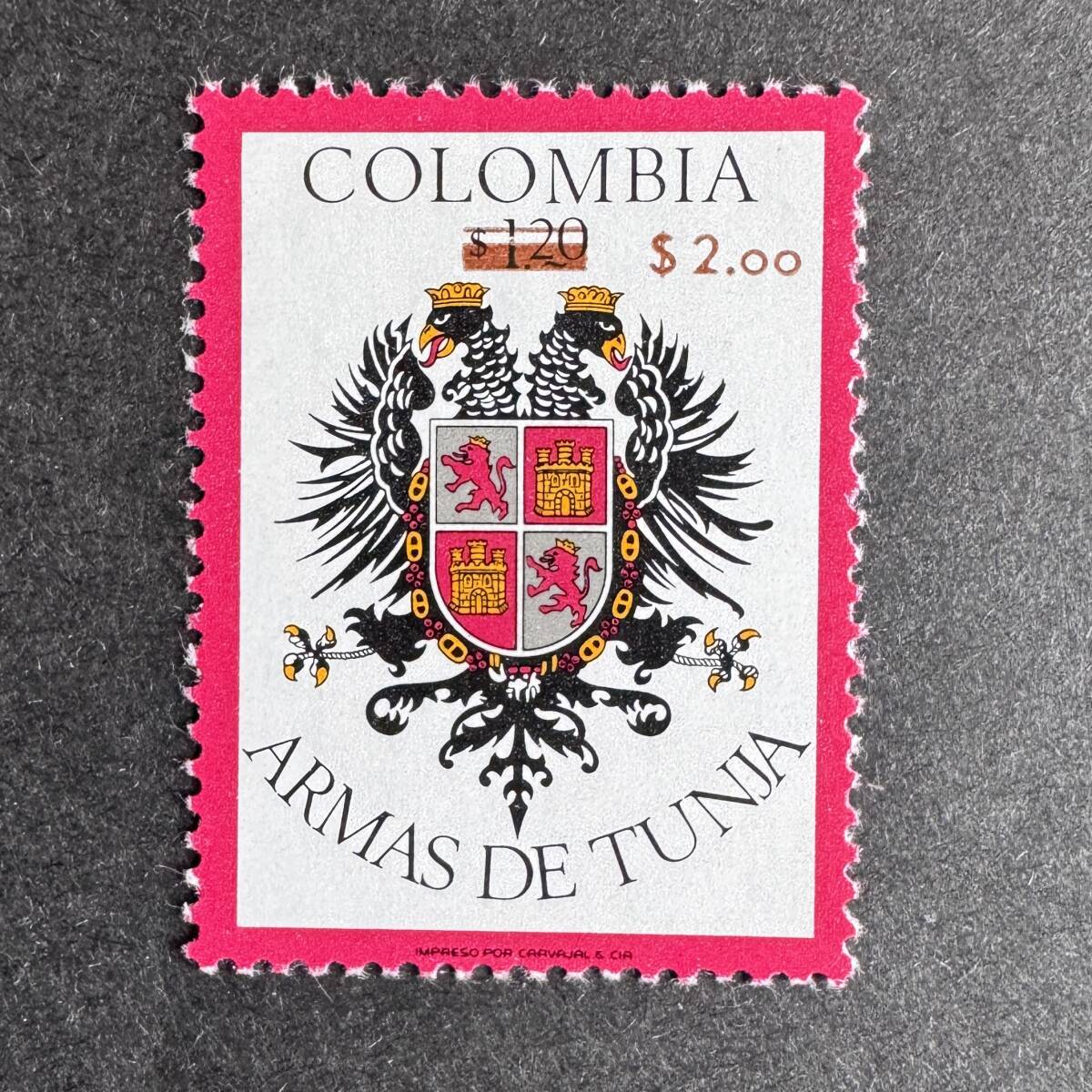 ★コロンビアの歴史的な都市トゥンハが持つスペイン植民地時代の栄光と王室との繋がりを象徴する切手です。双頭の鷲、カスティーリャ王国の象徴である城、レオン王国の象徴である獅子、王冠といった要素はすべて、トゥンハの由緒ある地位と文化的背景を反映しています。それぞれの図案からはスペインの支配下でトゥンハが重要な都市であったことが分かります。