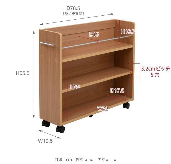 【カラー】 ダークブラウン、ナチュラル、ホワイト 【サイズ】 <外寸> 幅19.5×奥行78.5×高さ65.5cm/個 <内寸> オープン部:幅72×奥行17.5×高さ39cm cm 上部オープン部:幅72×奥行15×高さ16.5cmcm 【材質】 本体:プリント紙化粧合板 【収納数(1個あたり)】 文庫本:(約)144冊 コミック:(約)144冊 CD:(約)216枚 DVD:(約)96枚 Blue-ray:(約)165枚 【耐荷重】 固定棚:(約)10kg以下 可動棚:(約)7kg以下 【生産国】 インドネシア 【梱包】 サイズ:77.5×48×13.5cm、重量:16.1kg 【その他】 ・キャスター5個(うちストッパー付き2個)/個 ・背面化粧有り 【組み立て品】 お客様による組み立てが必要です。 |