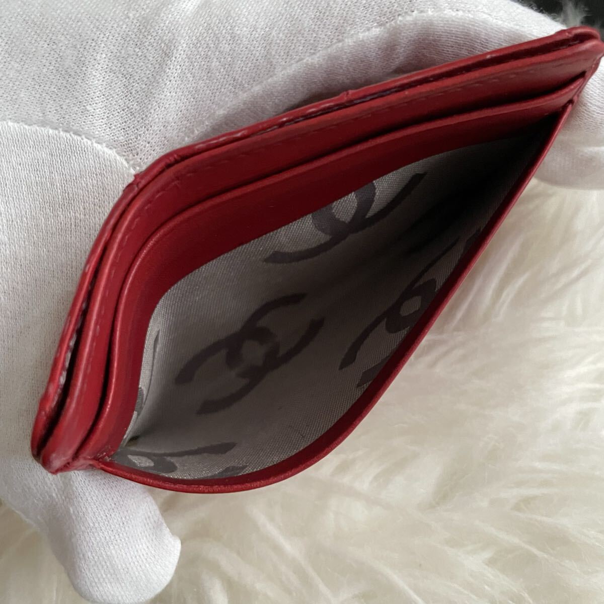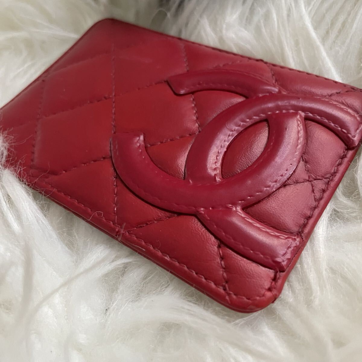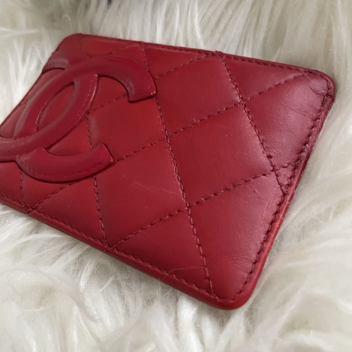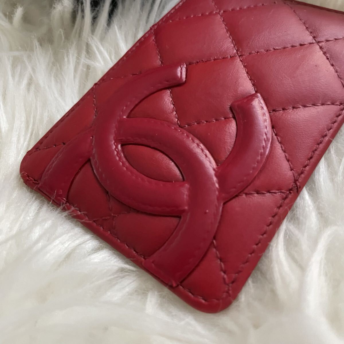 シャネル CHANEL カードケース 財布 カンボンライン 赤 名刺入れ 定期入れ フラグメントケース