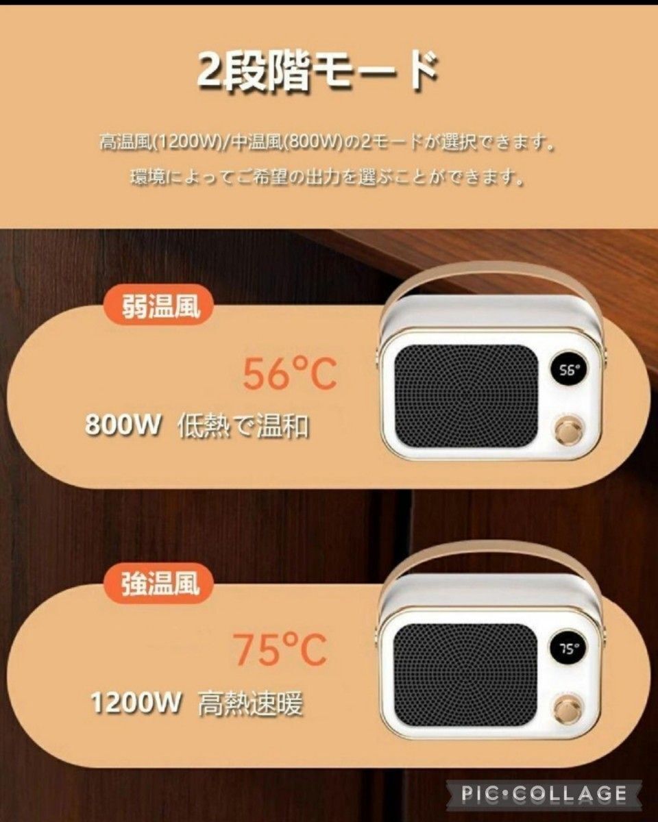 最新版セラミックファンヒーターは「高温風1200W」、「低温風800W」、2つの温度モードが搭載。PTCセラミック加熱技術を採用。セラミックファンヒーターは、ボタンを押すだけで約2秒速暖。メイン暖房の補助として、ピンポイントで足元や限られたスペースをしっかりと温めます。