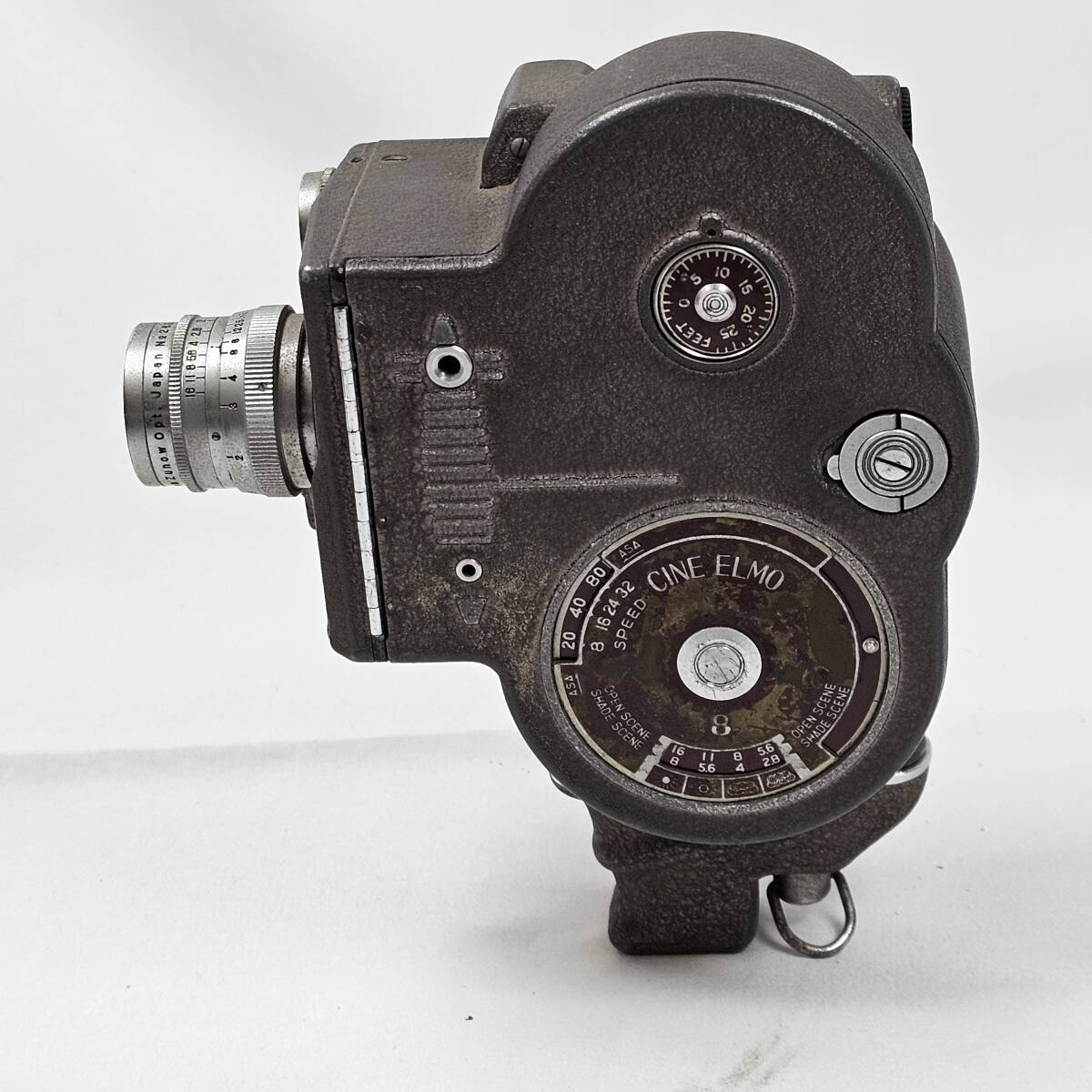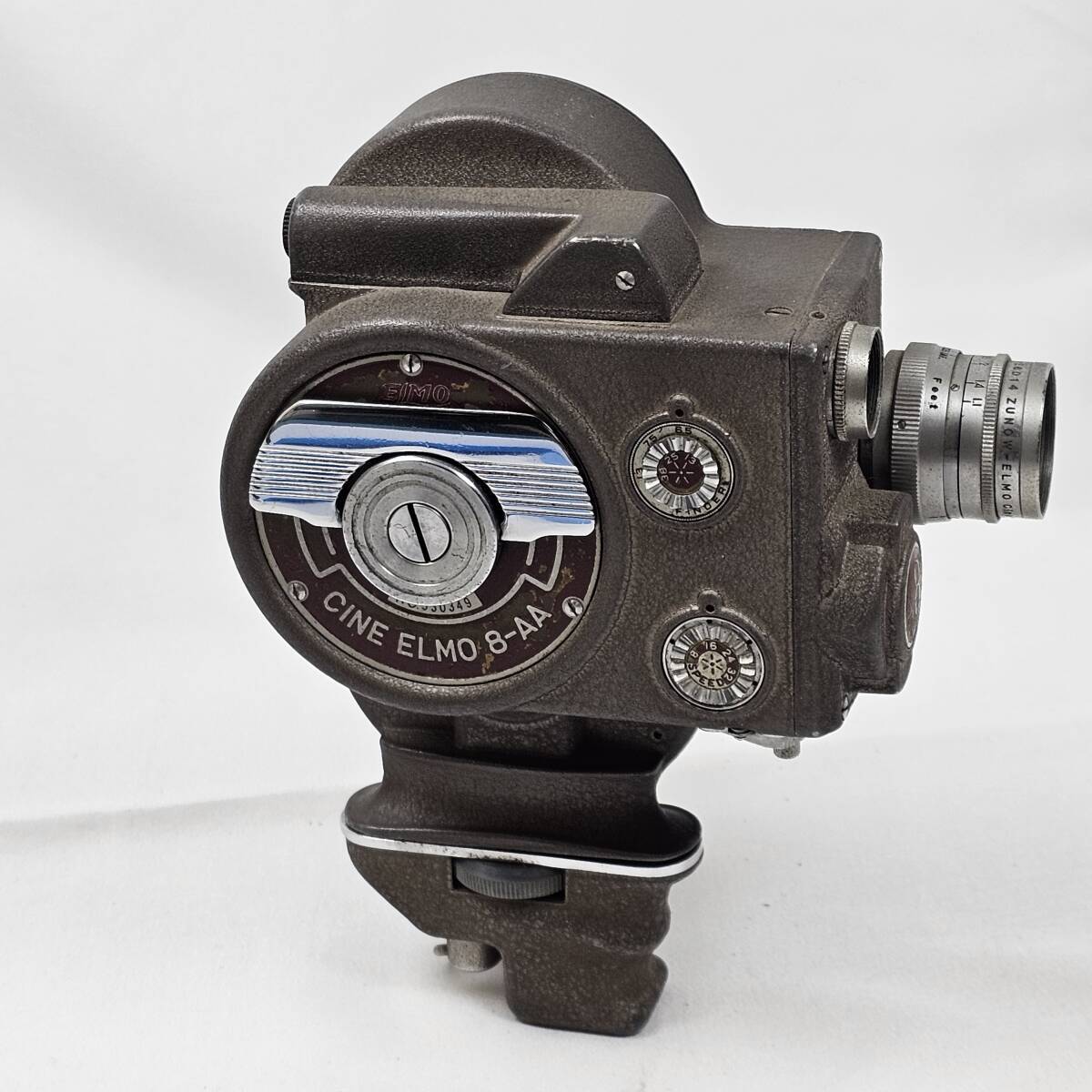 こちらは、昭和レトロな雰囲気を醸し出す、エルモ製の**8ミリシネカメラ「シネエルモ8-AA」**です。