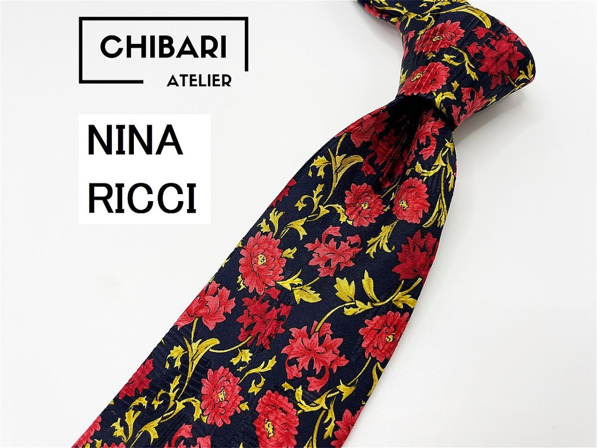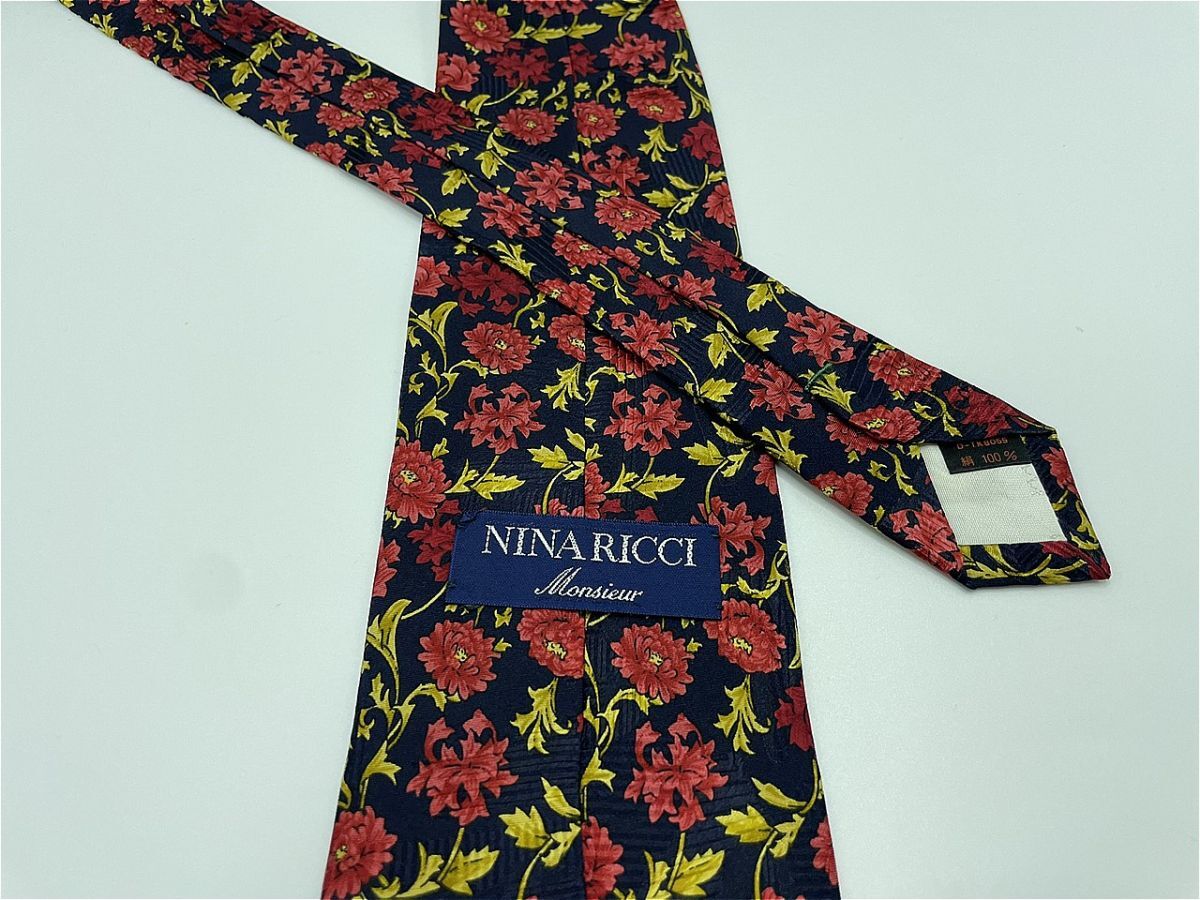 【超美品】NINA RICCI ニナリッチ 花柄 ネクタイ 3本以上 送料無料 メンズ ネイビー 1003099