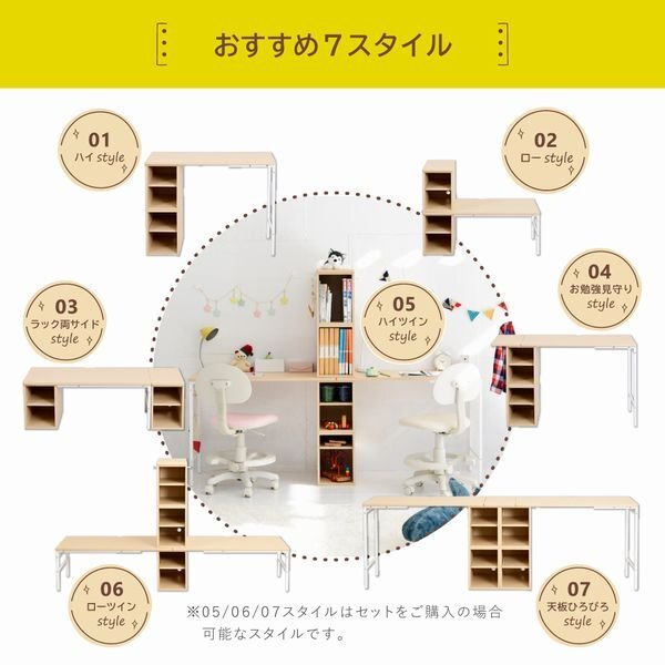 高さが2段階に調整できるコンパクトデスク”Crecimiento” 高さだけではなく用途に合わせてラック位置や天板のサイズが変えられるマルチなデスク。 お子様の成長を見守りながら使えるのがGOOD! |