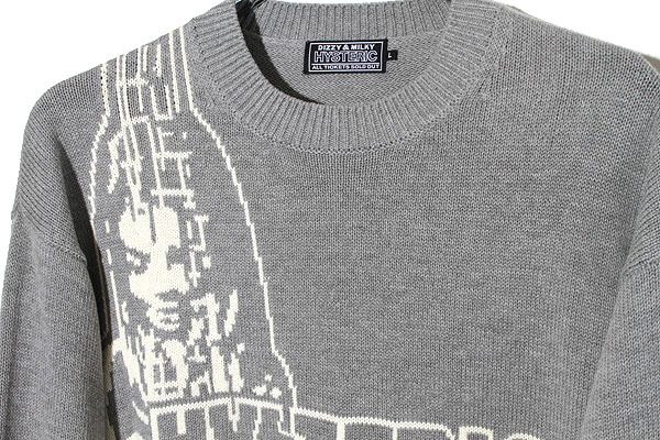 HYSTERIC GLAMOUR ヒステリックグラマー FLYING V編込 セーター ギターガール L GRAY グレー 02251NS01 /● メンズ