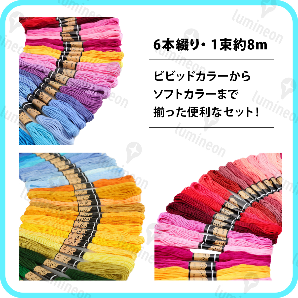 セット,白,黒,青,赤,アソート,金色,くすみカラー,蛍光カラー,白系,ネオンカラー,肌色,緑,紫,ゴールド,ベージュ,ポリエステル,刺しゅう,クロスステッチ,ミサンガ,裁縫,手芸,ハンドメイド,g012d