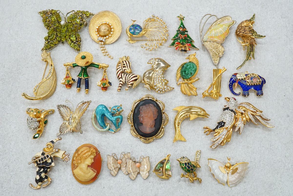 C996 ジャンク品 ゴールドカラー アニマル 昆虫 人像など 海外製含む ヴィンテージ ブローチ 25点 アクセサリー 大量 まとめて おまとめ