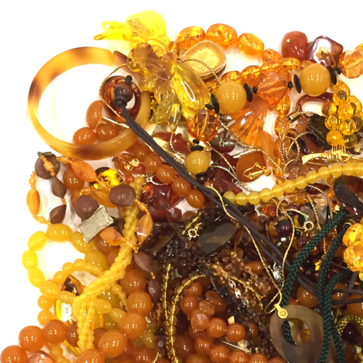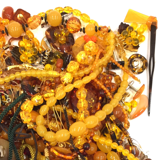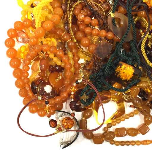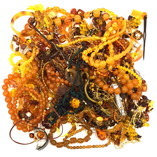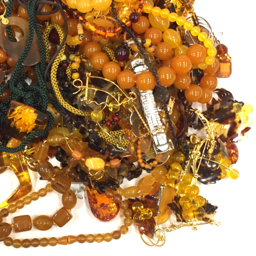 | 1円 鼈甲 べっ甲 琥珀 アンバー 他 ネックレス ブローチ バングル 等 イミテ 含 アクセサリー まとめ 総重量約1.7kg |
