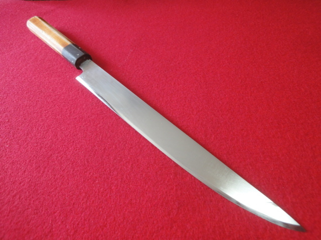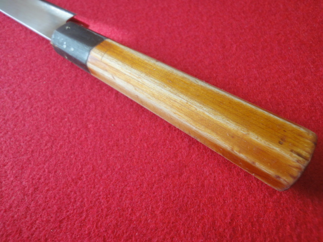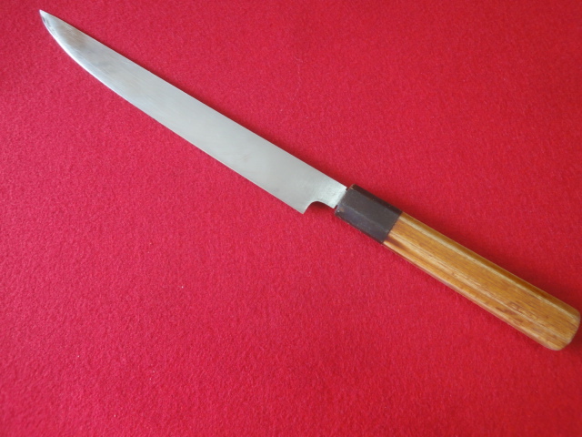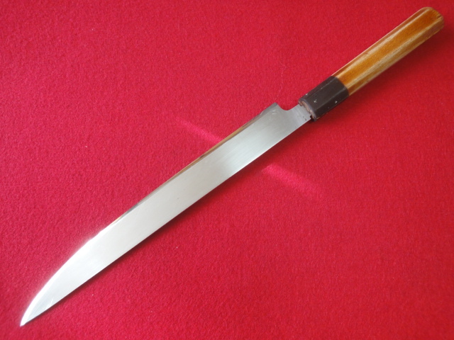【無銘】刺身包丁 ※八角柄 刃渡25.3㎝ 全長41.3㎝ 峰厚2mm ※両刃 中古品 全国一律送料1100円