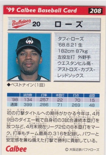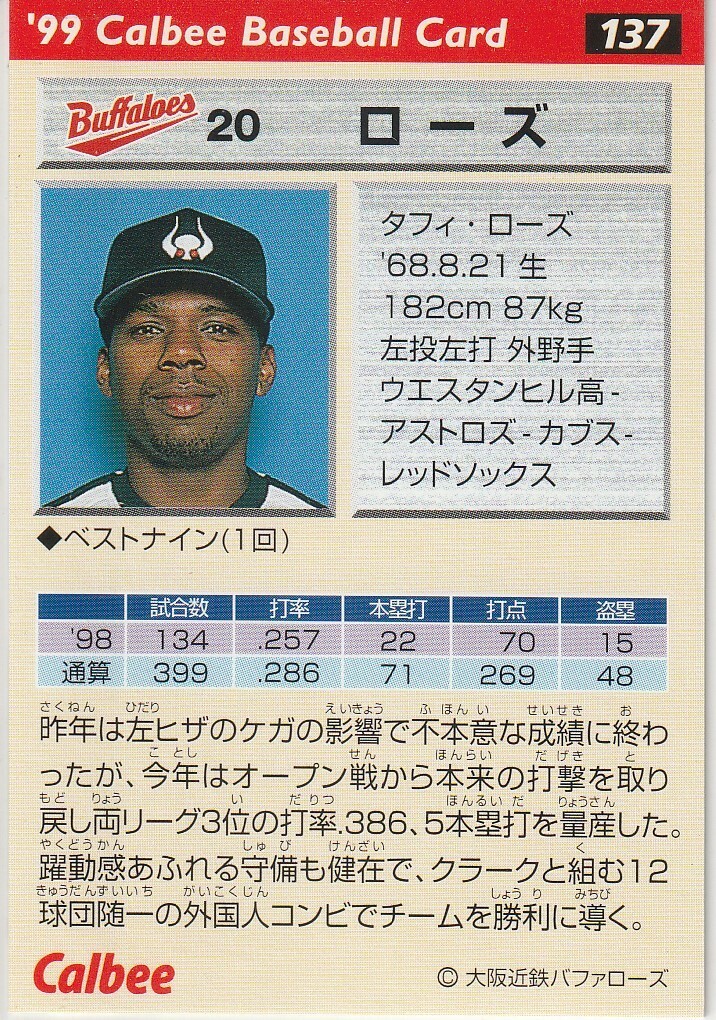 ●1999カルビー 【T.ローズ】 プレ版:金箔押サインパラレル No.137,208:近鉄