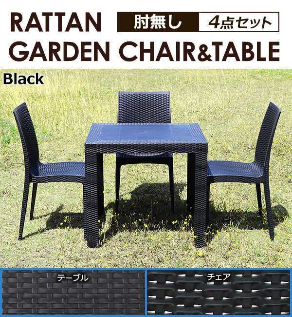 | 商品名 | 送料無料 ラタン調 ラタンテーブル ラタンチェア プラスチックチェア ガーデンチェア ガーデンテーブル 4点セット 肘無しチェア テーブル幅約80cm UVカット 3脚 軽量 ラタン調ガーデンセット 庭 パラソル使用可 屋外用 PP rtntbch |