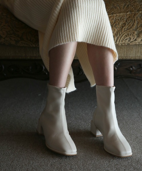 「UNE MANSION」 ショートブーツ 25.0cm アイボリー レディース