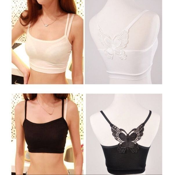 下着 チューブブラ ベアトップ ノーワイヤー 見えブラ トップス キャミチューブトップ 黒 ブラックベアトップ Tシャツブラ 薄手 見せブラ 蝶々 刺 チラ見せ薄くて柔らかいので、熱い日は体への負担が少ないブラカバー!