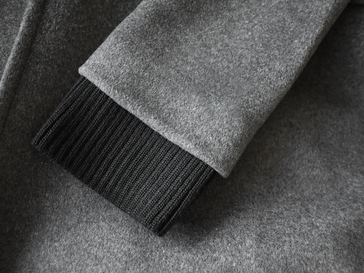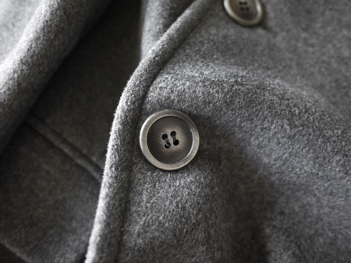 高密度圧縮ウールメルトンはしっかりと厚みがあり保温性はもちろん、なめらかな肌触りで着心地も抜群です。袖口はリブ仕様になっていたり、ボタンには特注のメタルボタンを使用していたりと、細部にまでこだわり抜かれた逸品でございます。