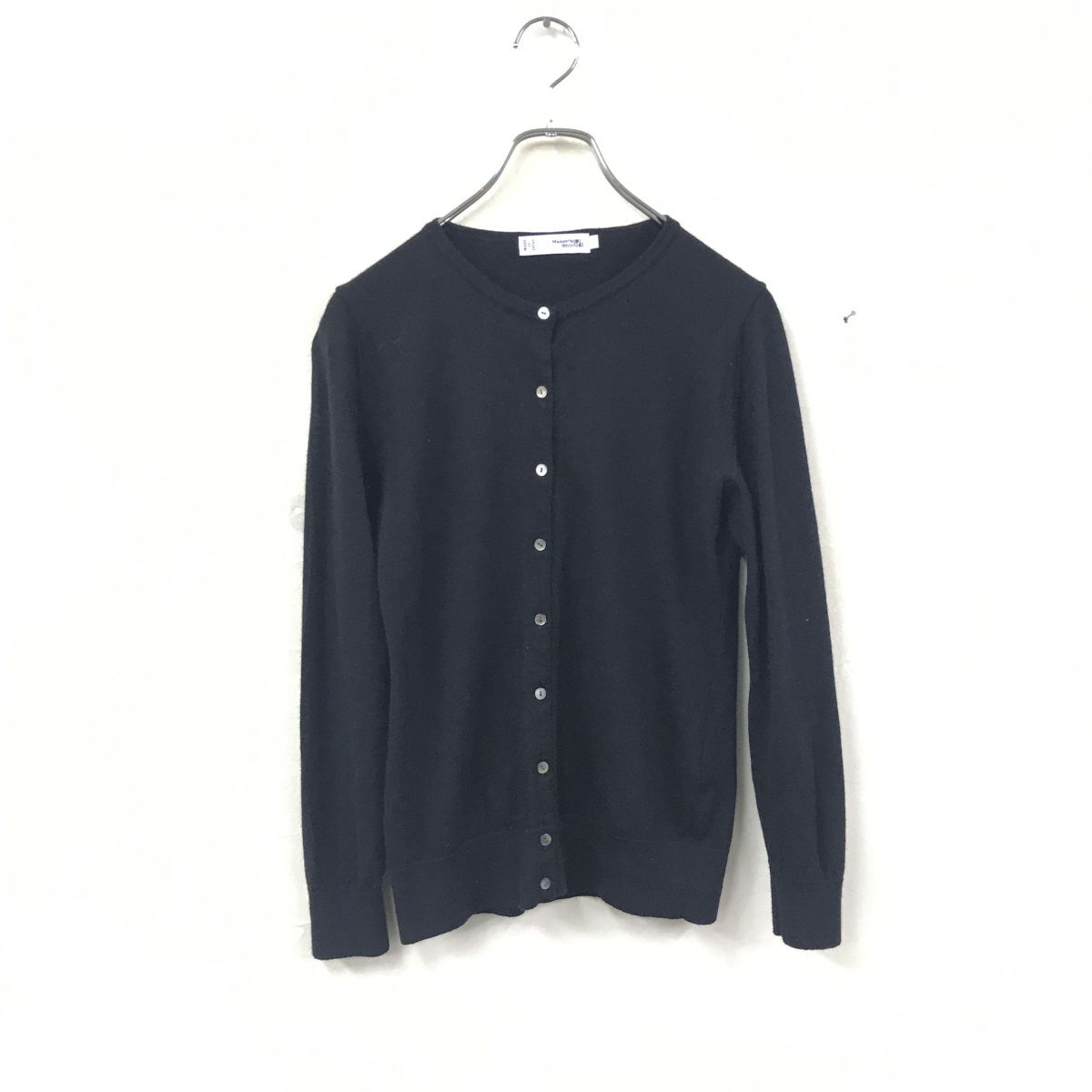2N1514-O◆Maker's Shirt 鎌倉 メイカーズシャツ鎌倉 長袖カーディガン 無地 バンドカラー◆sizeM ブラック ウール