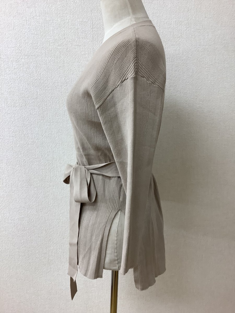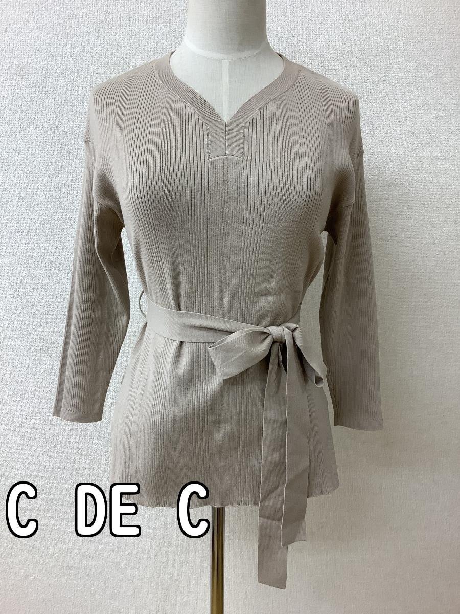 | 管理番号:10^138721 クードシャンス (C DE C) ベージュリブニット ベルト付き 表示サイズ:38 実寸(参考)