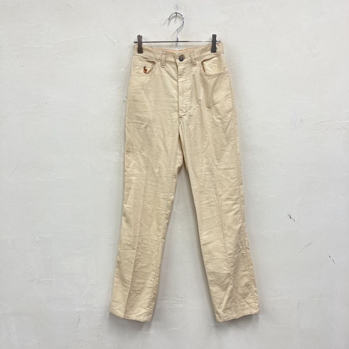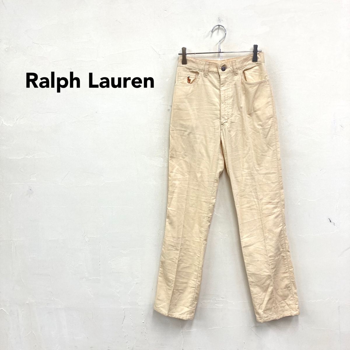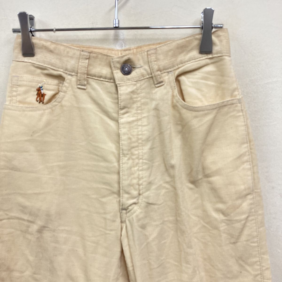 2N1491-Y◆Ralph Lauren 細畝コーデュロイパンツ ストレート 刺繍ロゴ ジップフライ レディース ◆size27インチ ライトベージュ系 綿
