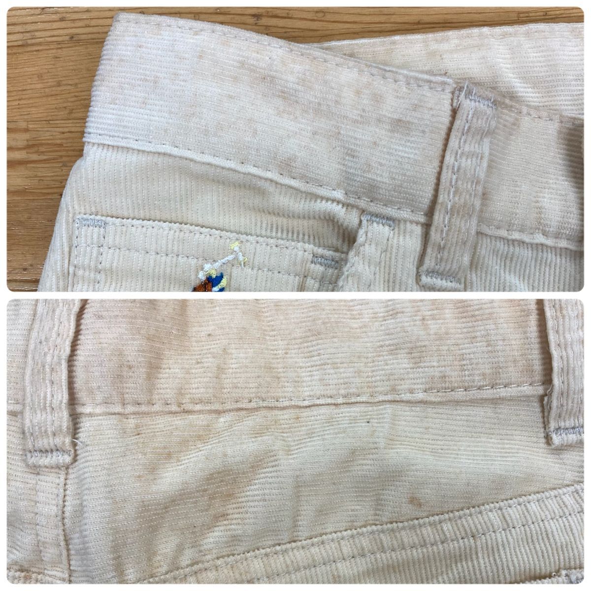 状態:ウエストや膝付近に画像のような汚れがあり、他にも全体的に小さな汚れがあるなど使用感がございますが、その他着用に支障をきたすようなダメージなどは無く、古着慣れされている方でしたら、これからもご愛用いただけるお品物かと思います。