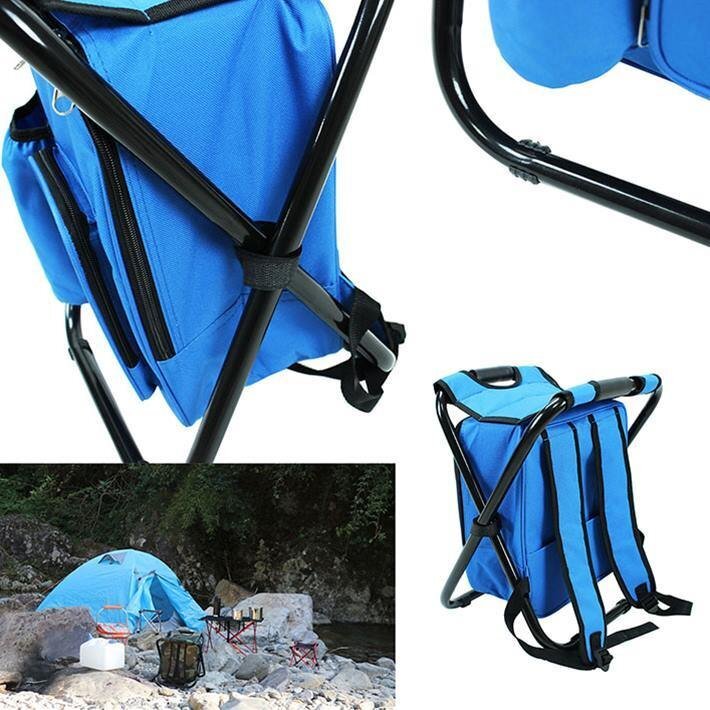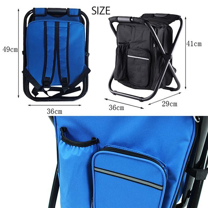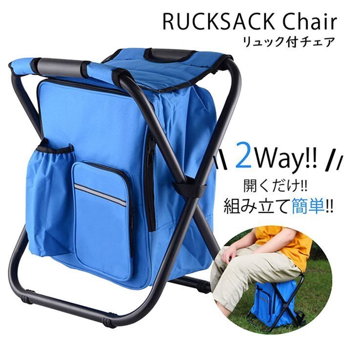 リュックチェア 折りたたみ 椅子 リュックサック 保冷バッグ 保温 アウトドア 行列 運動会 キャンプ バーベキュー 7990405 ブルー 新品