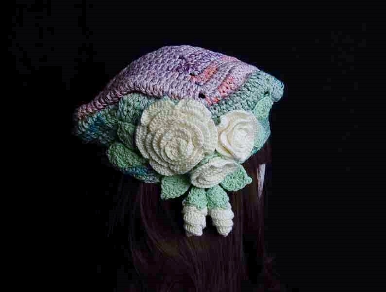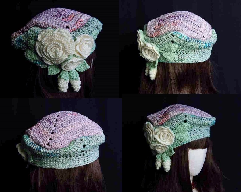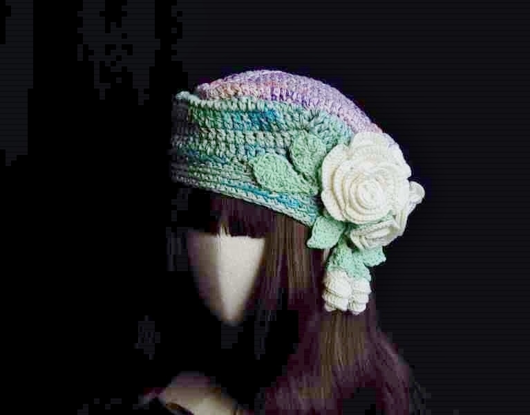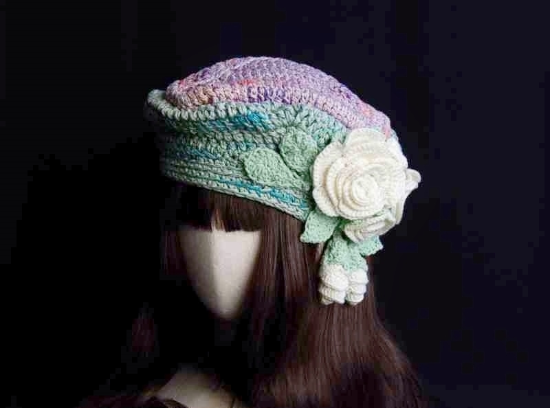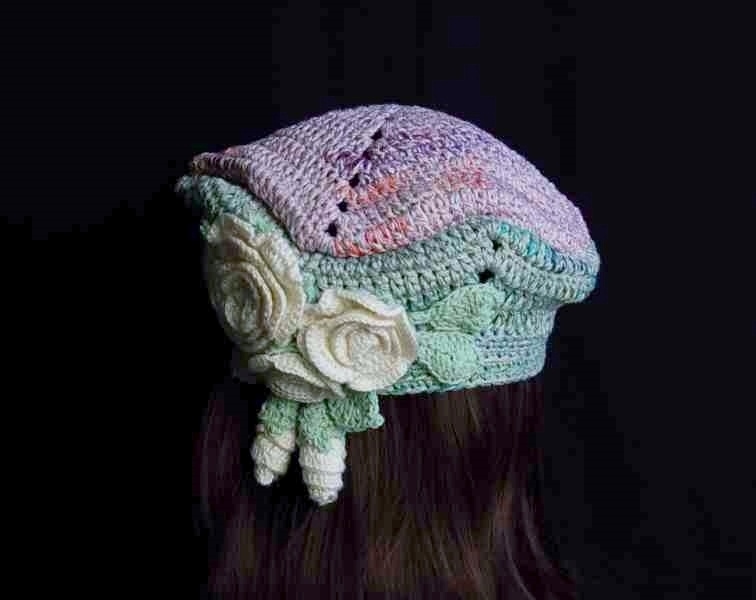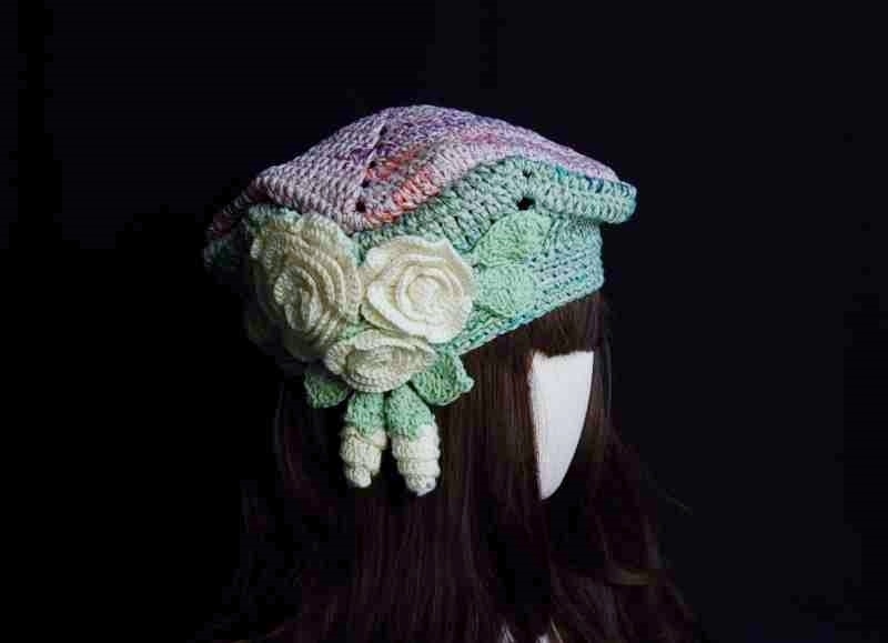 ベレー帽 材料 本体 コットン +アクリル 緑+薄紫 単色ではなく濃い目のアクセントカラーがミックスされています 写真は黒をバックにしたため再度が高めになっています もう少し ぼよーーんとした色味になります モチーフ コットン | |||