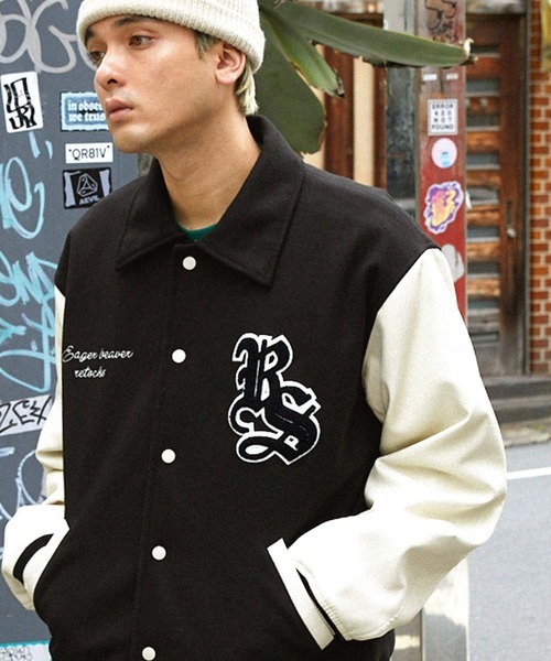 参考商品名:【retock’s】サガラワッペン/チェーンロゴ刺繍 ビッグシルエットスタジャン