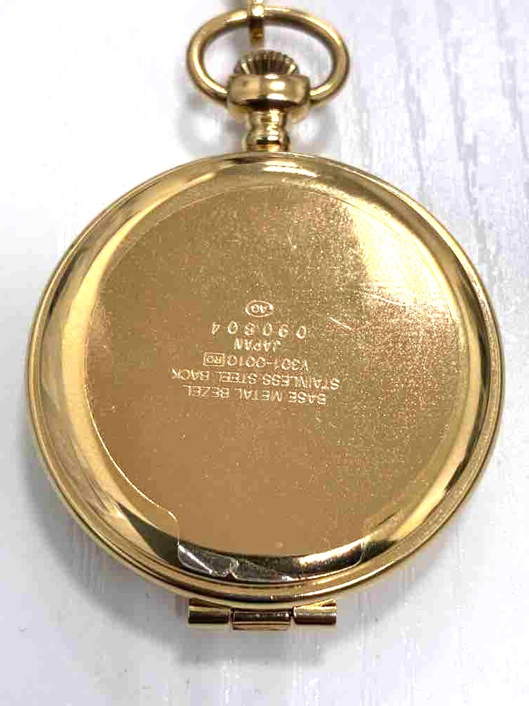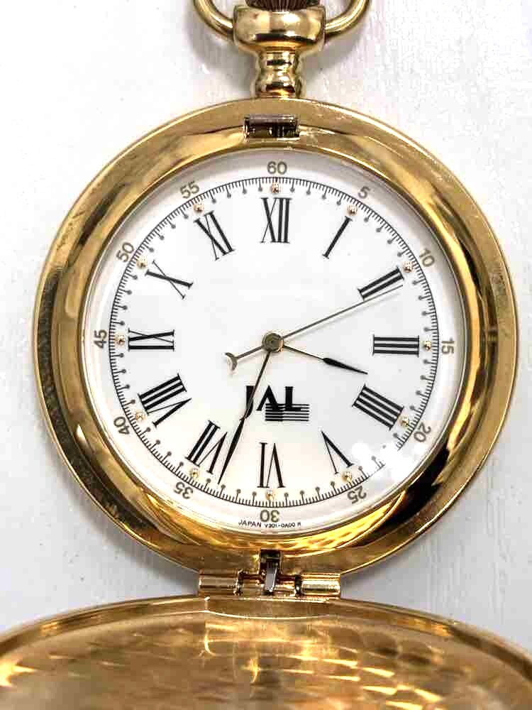 (SN2063) 1円スタート! SEIKO セイコー 懐中時計 クォーツ JALロゴ 服部セイコー V301-0010 ゴールド色 譲渡品 出品時稼働確認済み