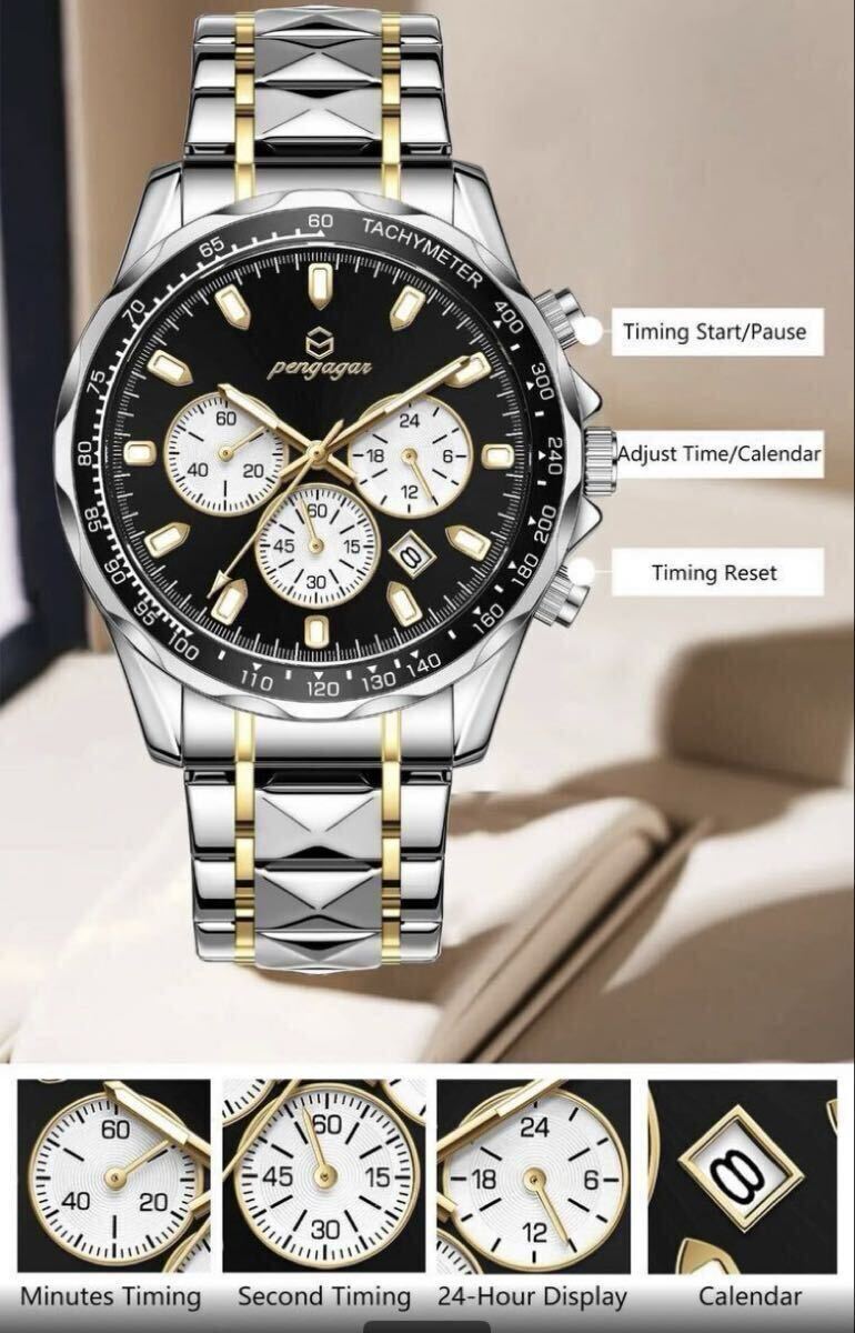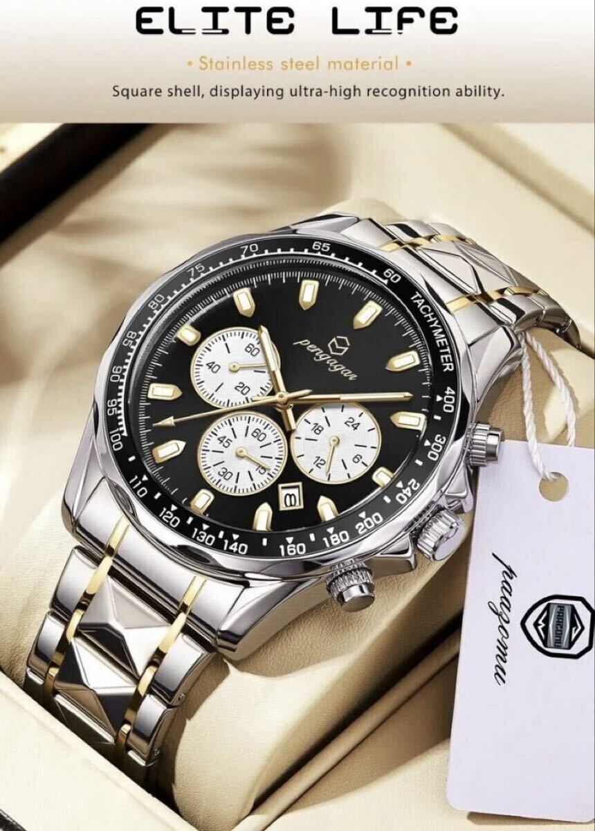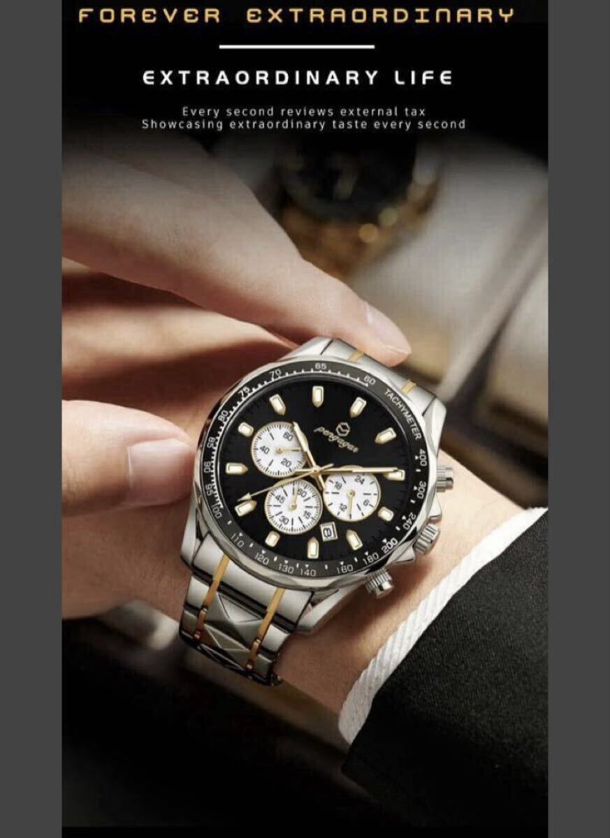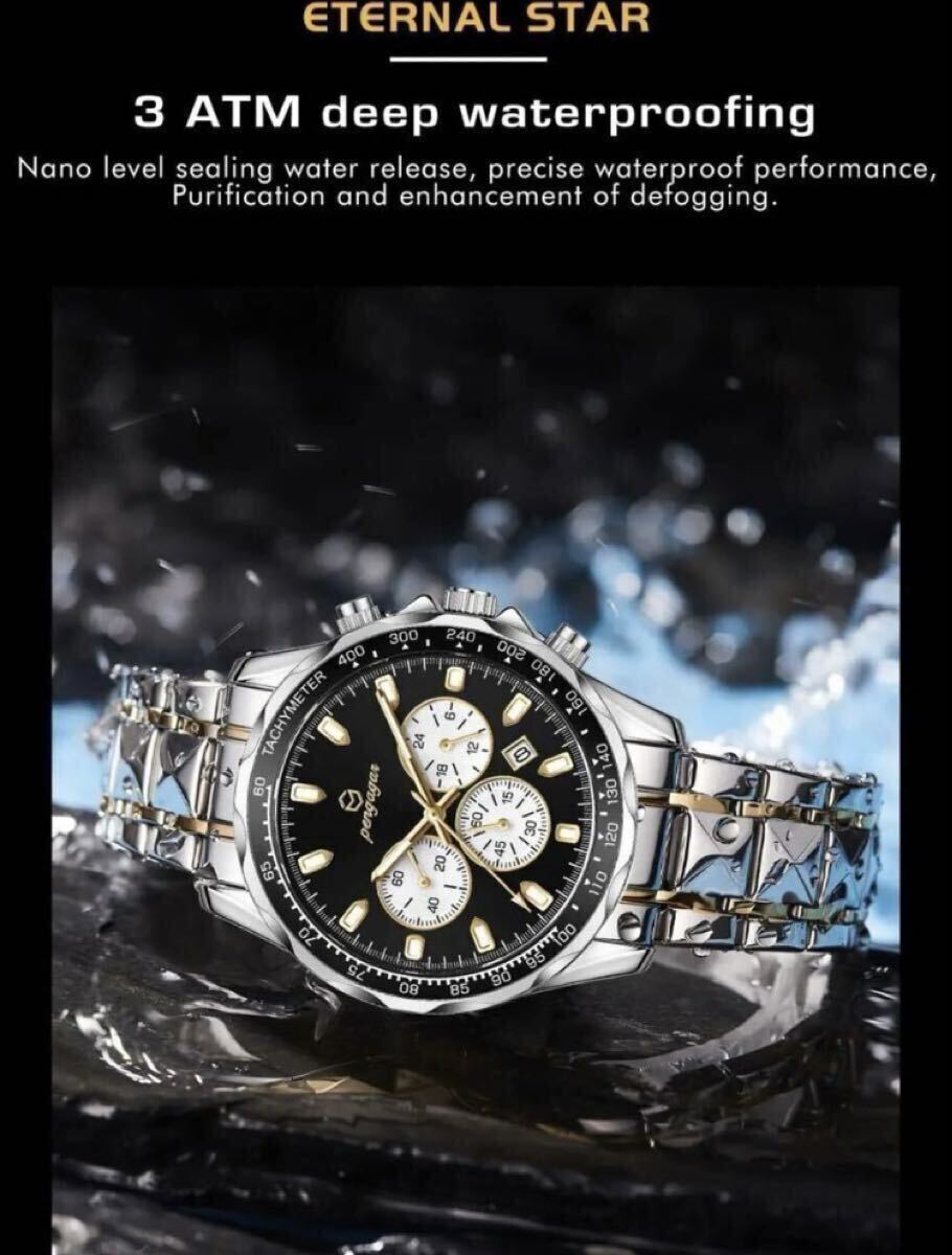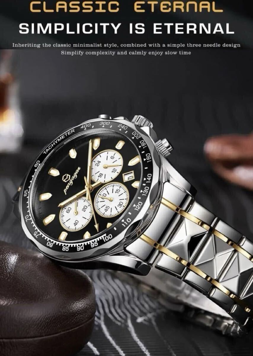 メンズカジュアルスポーツウォッチ ステンレスベルト ステンレススチール 防水 クロノグラフ トップブランド ビジネスブレスレット 2024年モデル