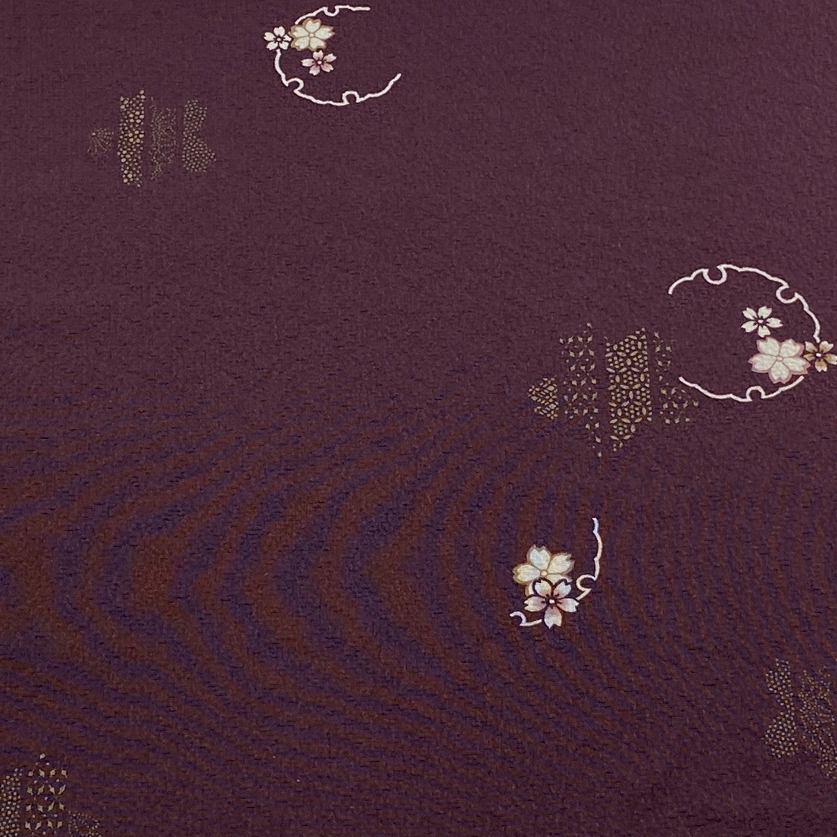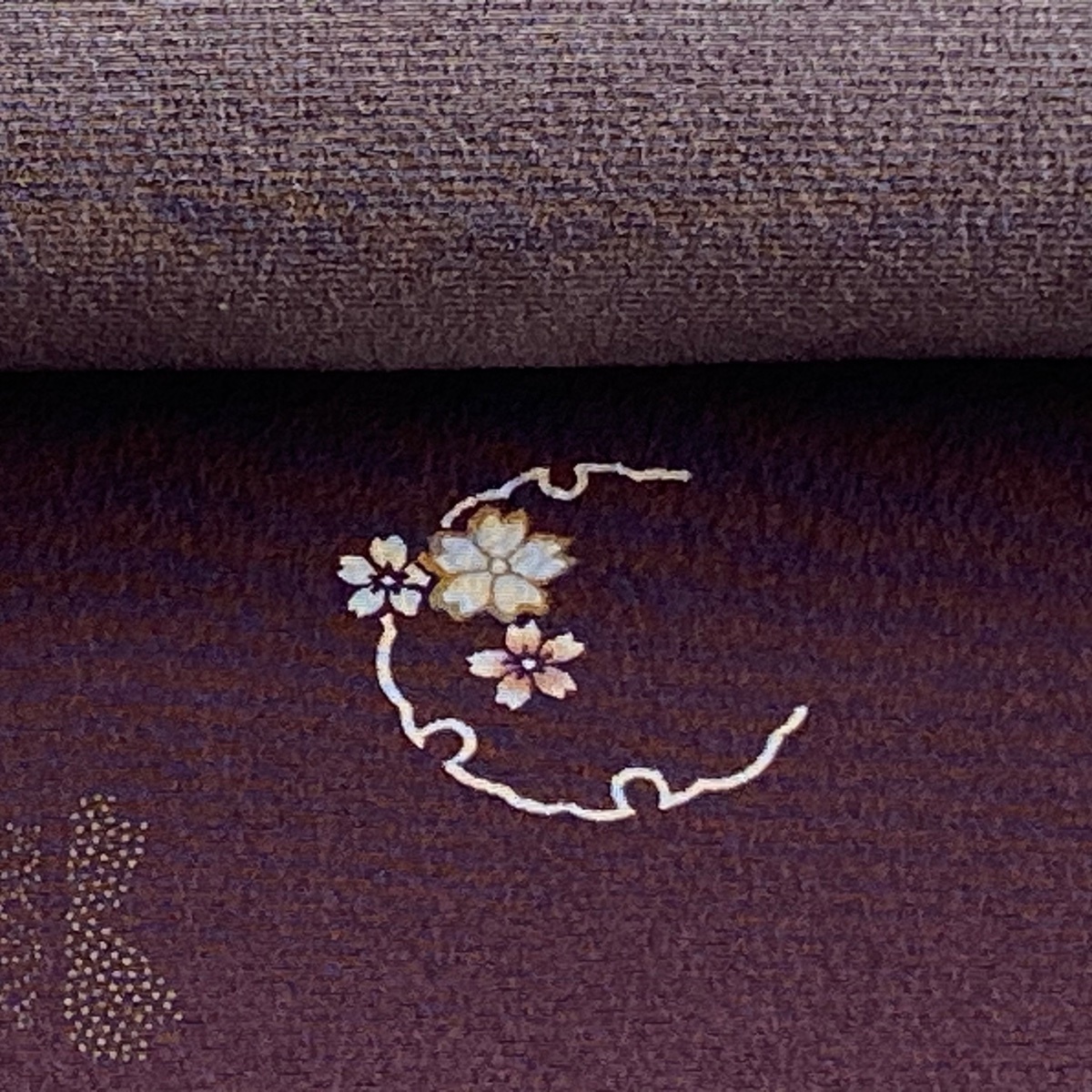 | 反物 秀品 小紋 桜 雪輪 茶紫 正絹 【中古】 |
