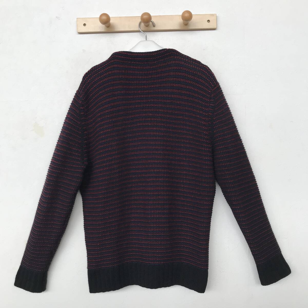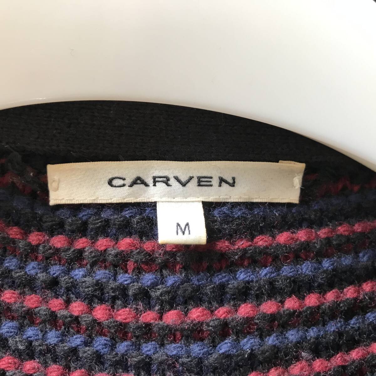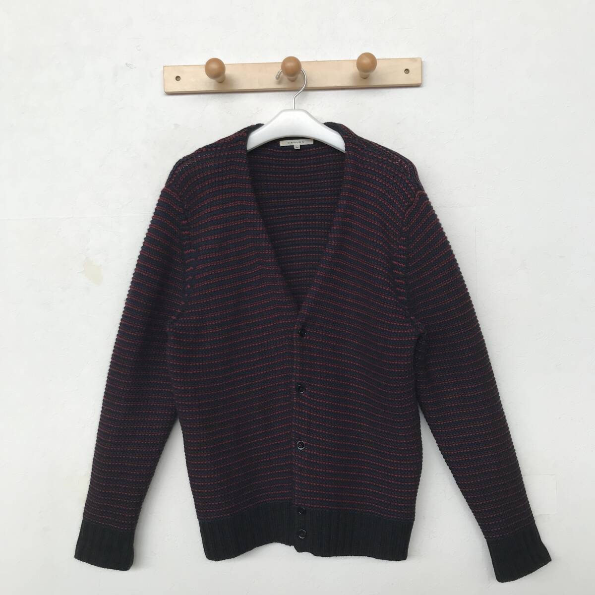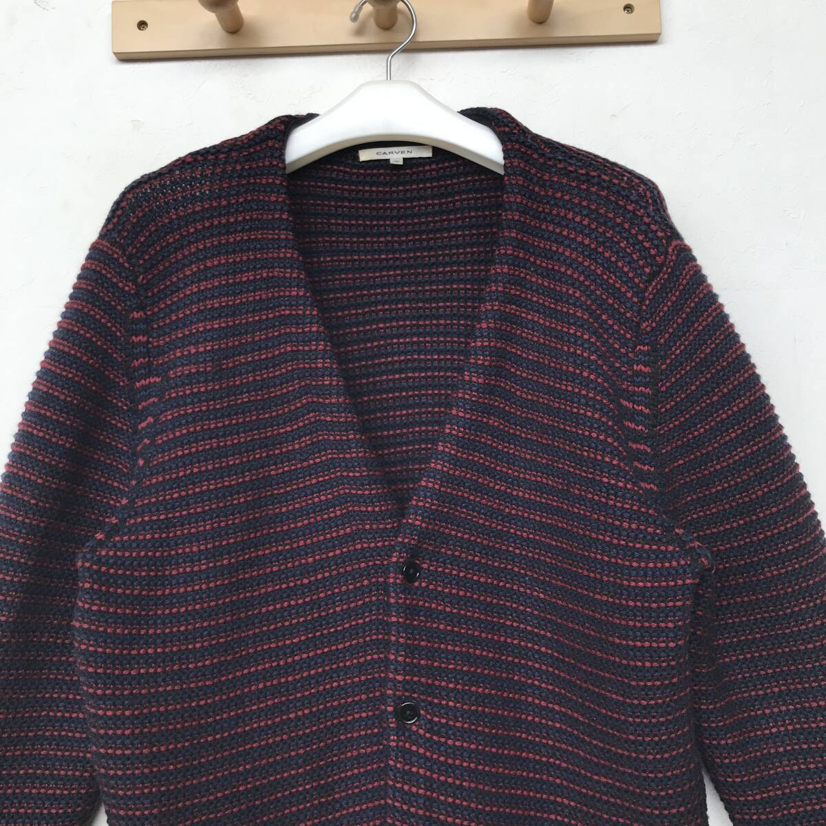 CARVEN KR6C-NA1-1001 カルヴェン メンズ ボーダー柄 厚手ウールニットカーディガン 良品 size M BEK1002