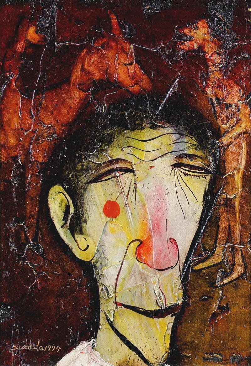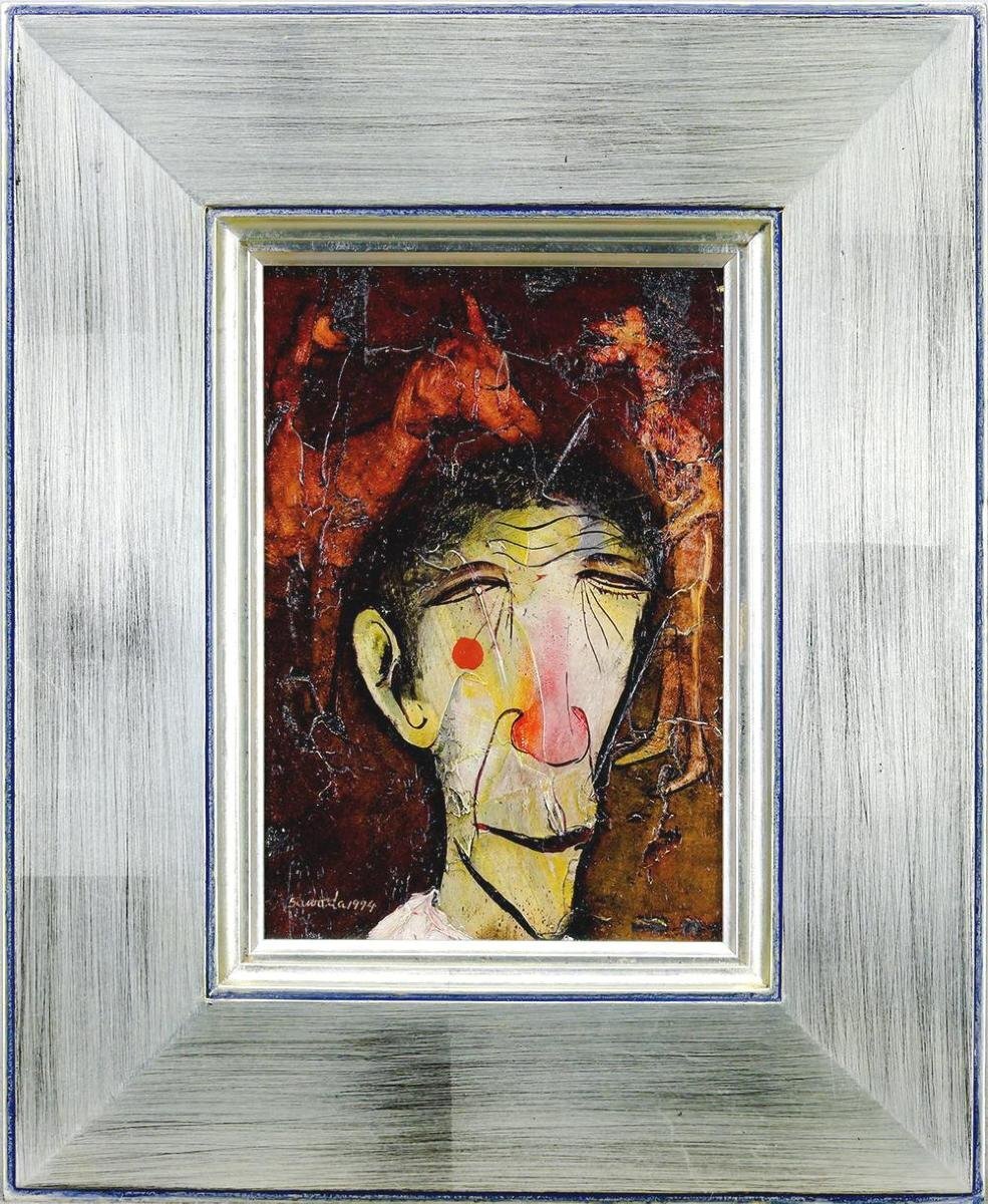 【真作】【WISH】澤田哲郎 油彩 SM 1974年作 ◆道化   〇物故巨匠 シベリア抑留 松本竣介らと三人展 #25033272