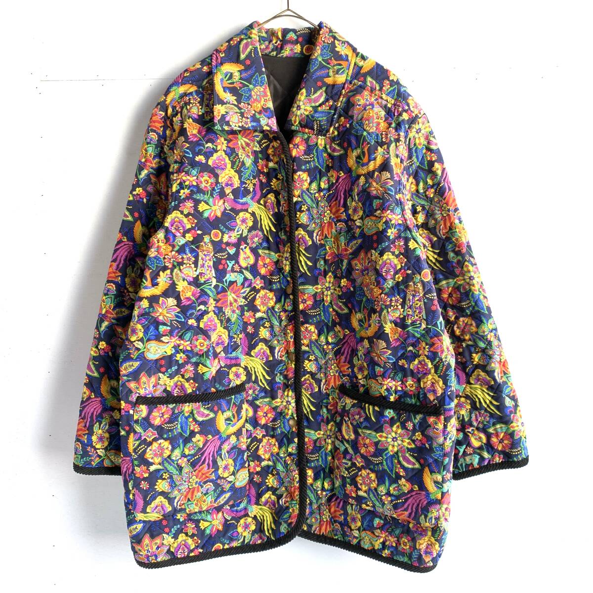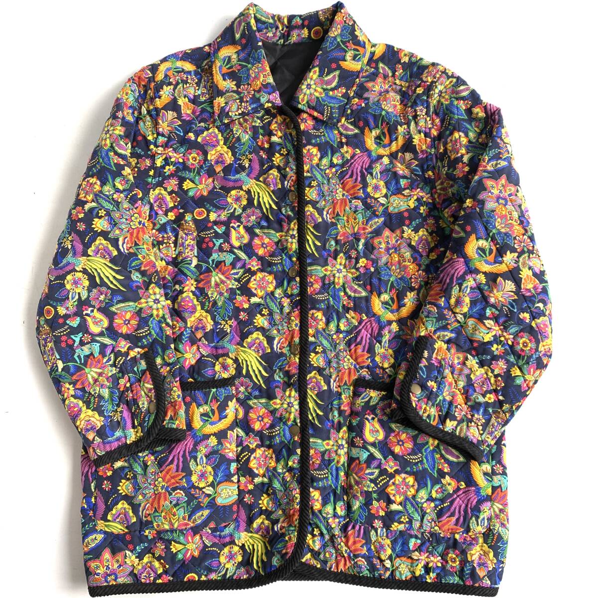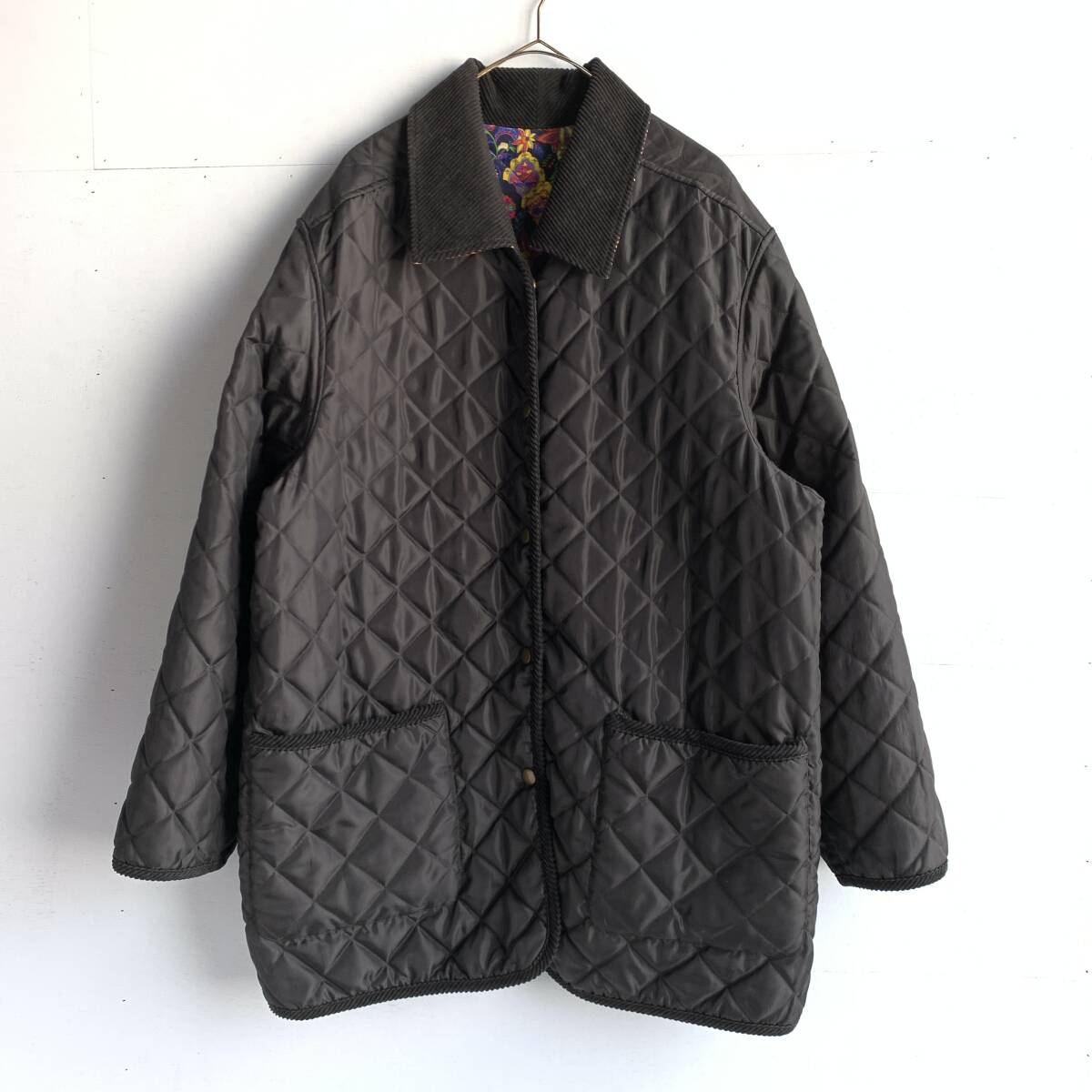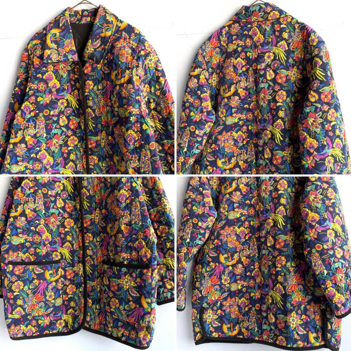 ☆Pourquoi Pes nous シルク リバーシブル キルティングコート ジャケット 総柄 アウター ブラック系 絹100% F【送料一律/同梱可能】Iの出品です。