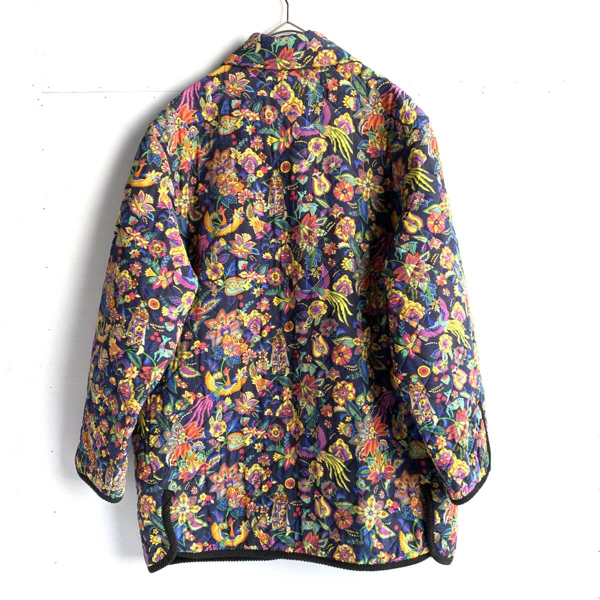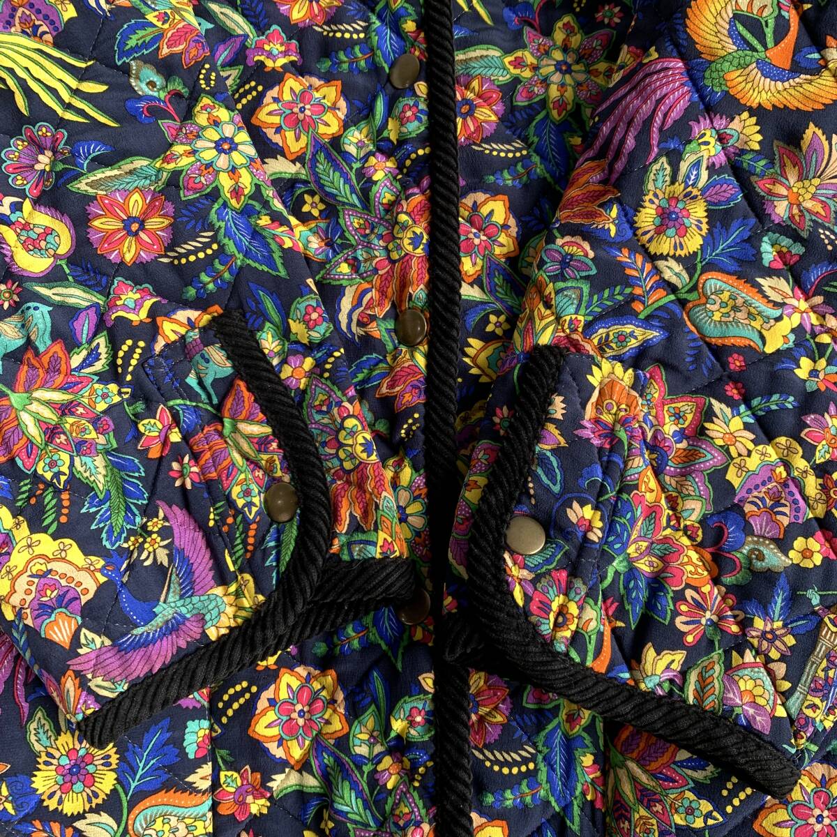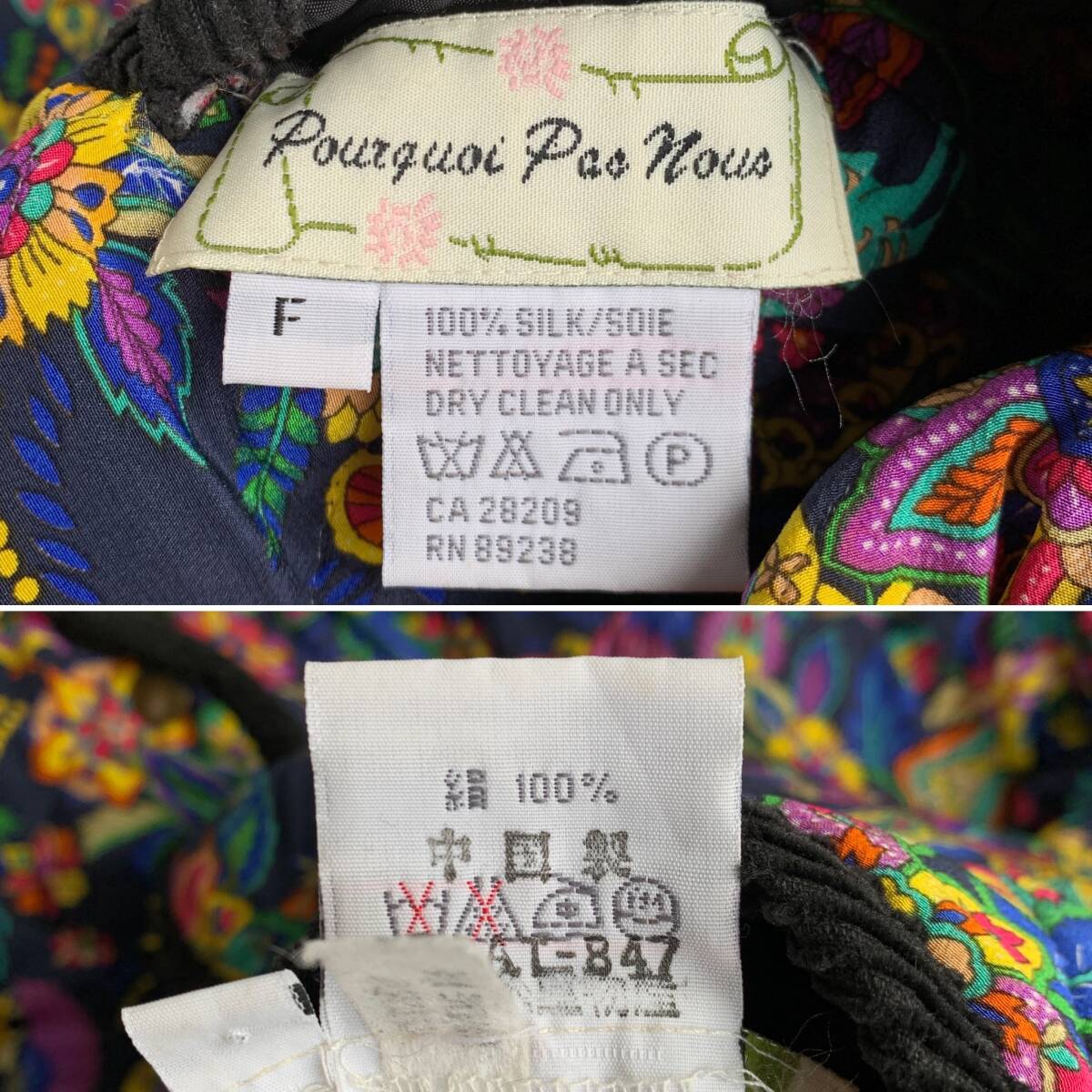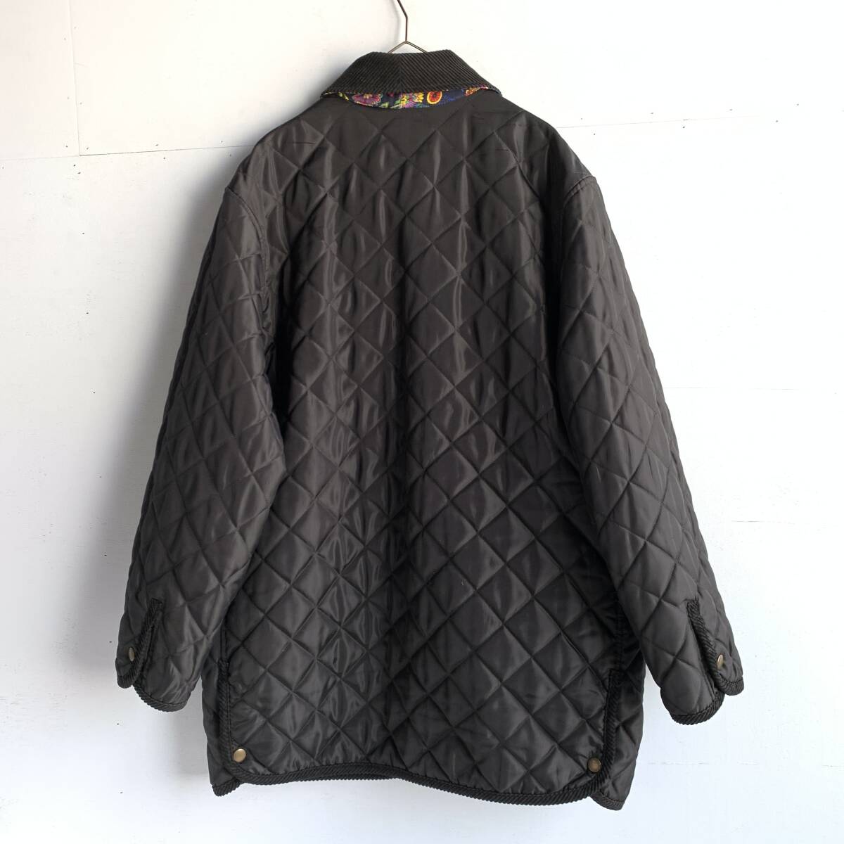 ☆Pourquoi Pes nous シルク リバーシブル キルティングコート ジャケット 総柄 アウター ブラック系 絹100% F【送料一律/同梱可能】Iの出品です。