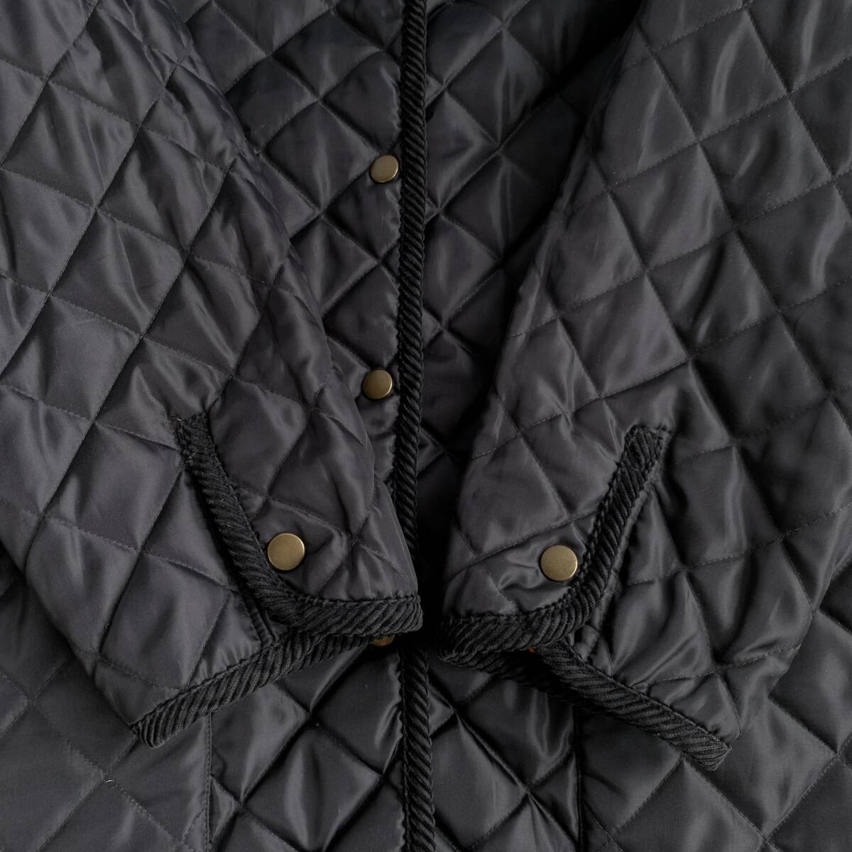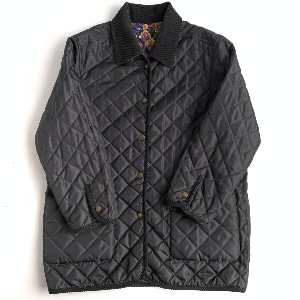 ☆Pourquoi Pes nous シルク リバーシブル キルティングコート ジャケット 総柄 アウター ブラック系 絹100% F【送料一律/同梱可能】I