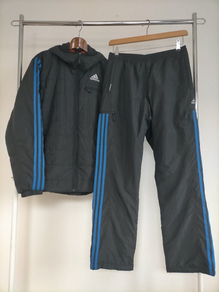 adidas CLIMA STORM 裏地起毛 中綿入り フード付き ウインドブレーカー上下セットです。
