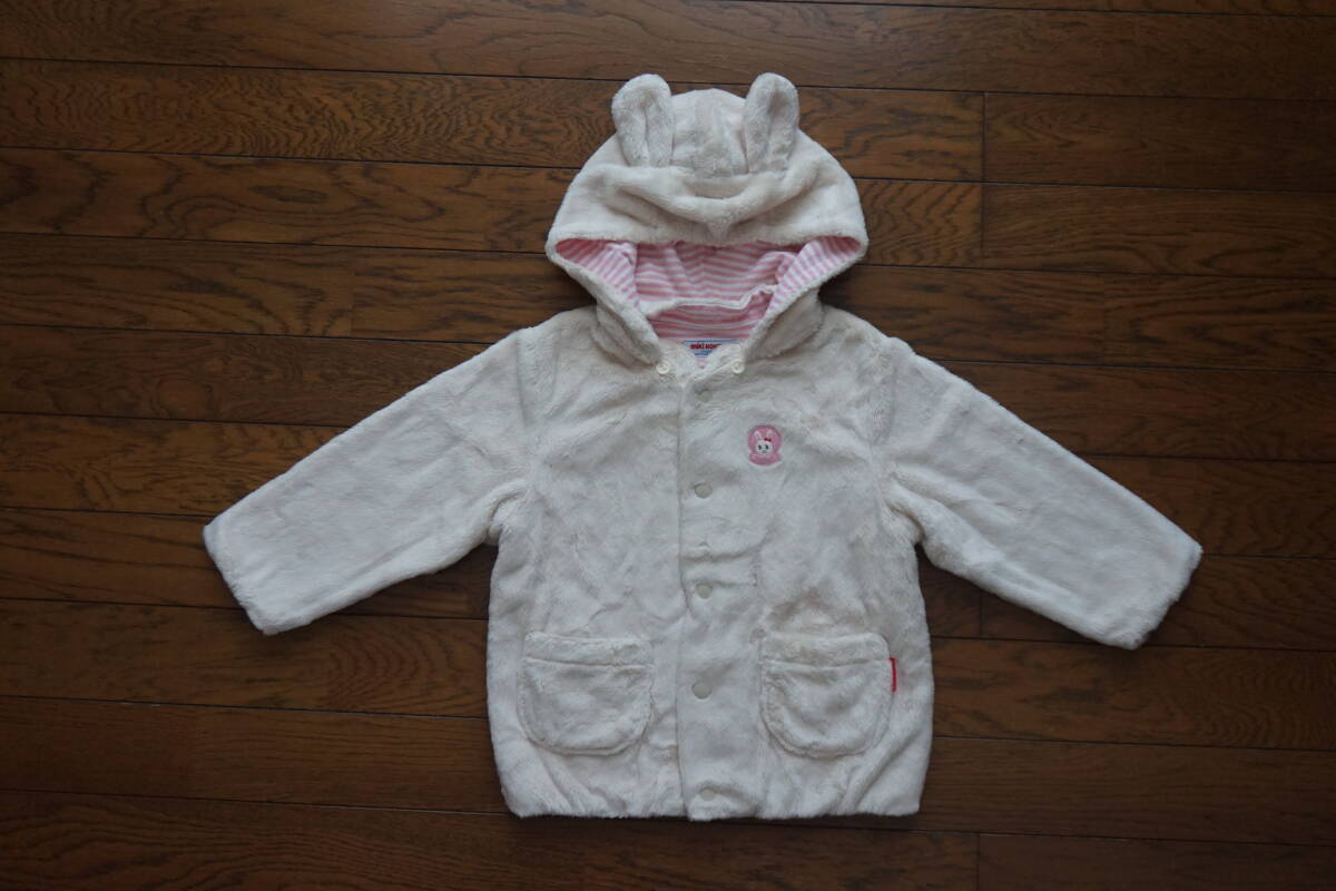 ◇ MIKIHOUSE ミキハウス ◇ うさこ うさ耳フード付き マイクロファー ふわふわパーカー ◇ size M ( 80-90 )