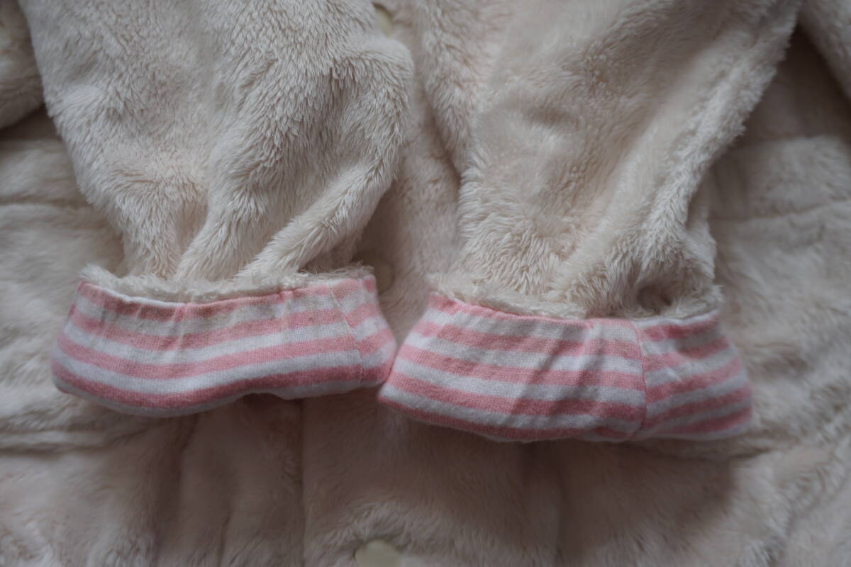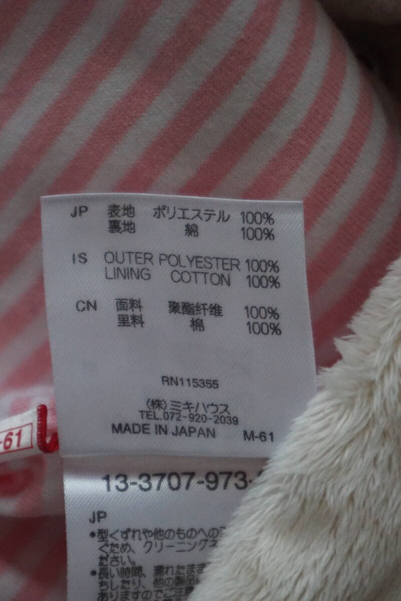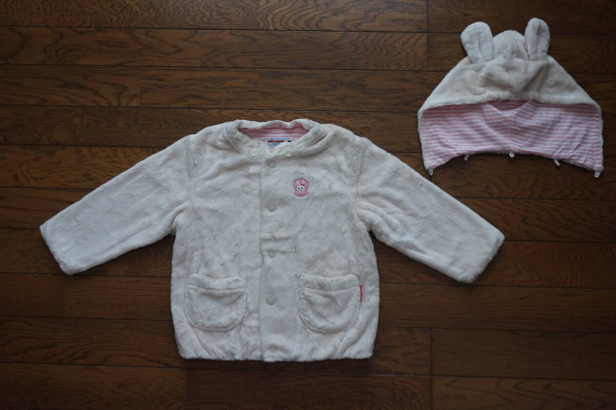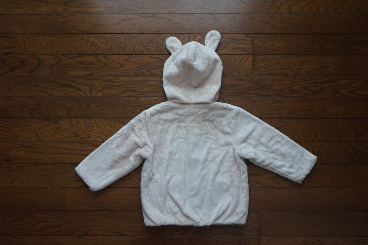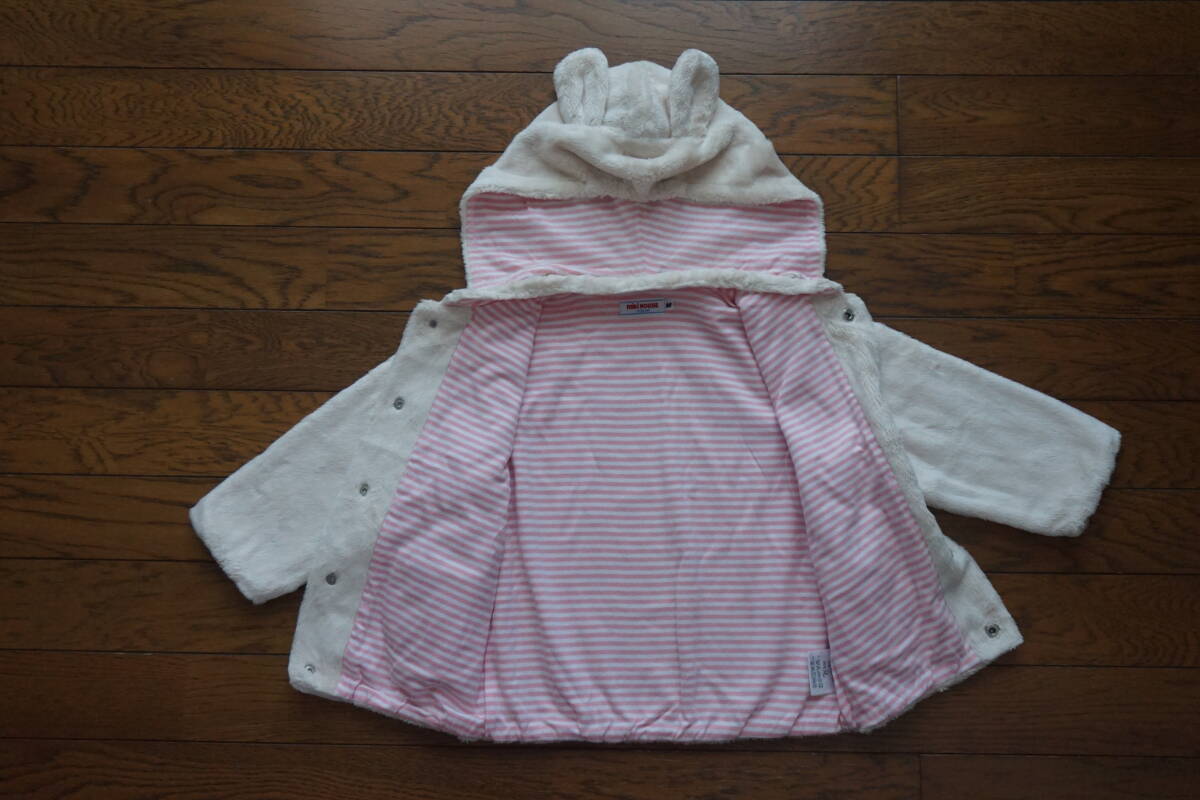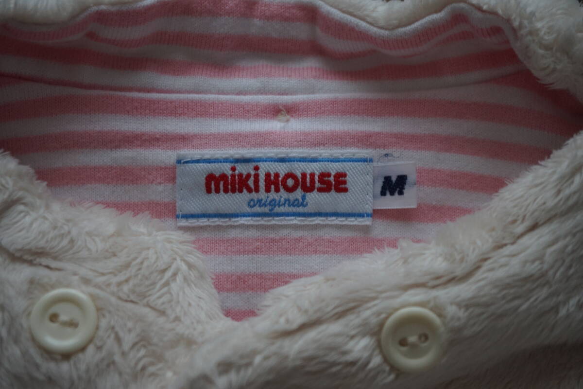*◇ MIKIHOUSE ミキハウス ◇ うさこ うさ耳フード付き マイクロファー ふわふわパーカー ◇ size M ( 80-90 )  です。  6枚目の写真にありますように、汚れがあります。  畳ジワ・洗濯による色落ち・毛羽立ちがあります。