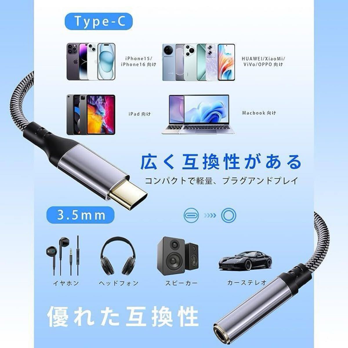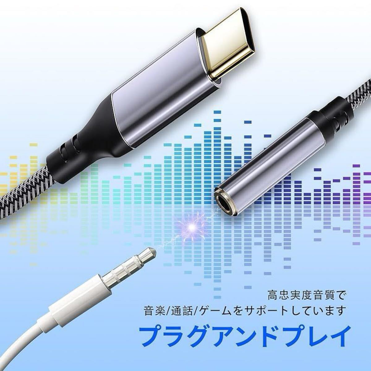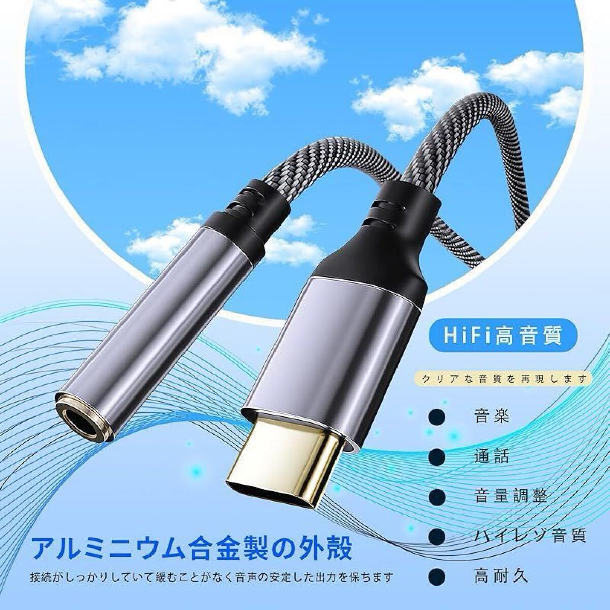 商品名:イヤホンジャック 変換 タイプc 【2025アップグレード版】 usb c 変換アダプタ 3.5mm Hi-Fi音質 DAC搭載 高耐久ケーブル 屈曲耐久試験 搭載 24bit/96KHz対応 電話/音量調節/音楽対応 iphone16 /15/iPad/iP