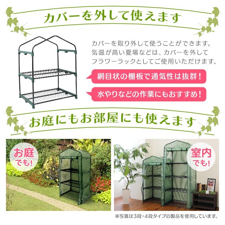 簡単に設置可能な2段用ガーデンハウスです。 雨や風、対策の難しい霜の被害などからお花や植物を守ります。 ビニールカバーを下ろせば害虫対策にも! 暑い夏はカバーを外して、シンプルなフラワーラックとしてもお使いいただけます。 お気に入りの植木鉢やシルクフラワーなどを立体的にディスプレイできます。 網目状の棚板で通気性は抜群!水やりなどの作業にもおすすめです。 コンパクトなのでお庭や玄関、ベランダに置いても邪魔にならず、 お天気が気になる時には室内にも置けるサイズ感です♪ カバーは巻き上げてロープで留められます。 お手入れ作業中や、ハウス内の温度上昇が気になる時はカバーを巻き上げ、 風をいれて温度調節が可能です。 組み立ては工具不要! 部品を差し込んで棚板を乗せるだけで簡単に完成します。 【商品詳細】 タイプ:2段 カラー:グリーン(カバー)、ブラック(棚) サイズ(約):幅70cm×奥行き49cm×高さ92cm ※カバー含む 重量(約):2.4kg 棚耐荷重:1段につき約5kg 素材 ・カバー :ビニール ・フレーム:スチールパイプ 【注意事項】 ・強風の際には外での使用をお控えください ・仕様/デザインは改良のため予告なく変更することがあります |