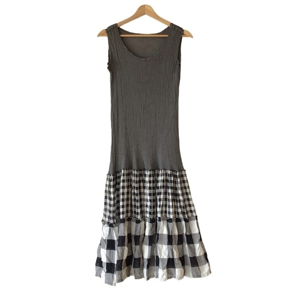 ミー/イッセイミヤケ me ISSEY MIYAKE - グレー×黒 レディース ノースリーブ/ロング/チェック柄 美品 ワンピース