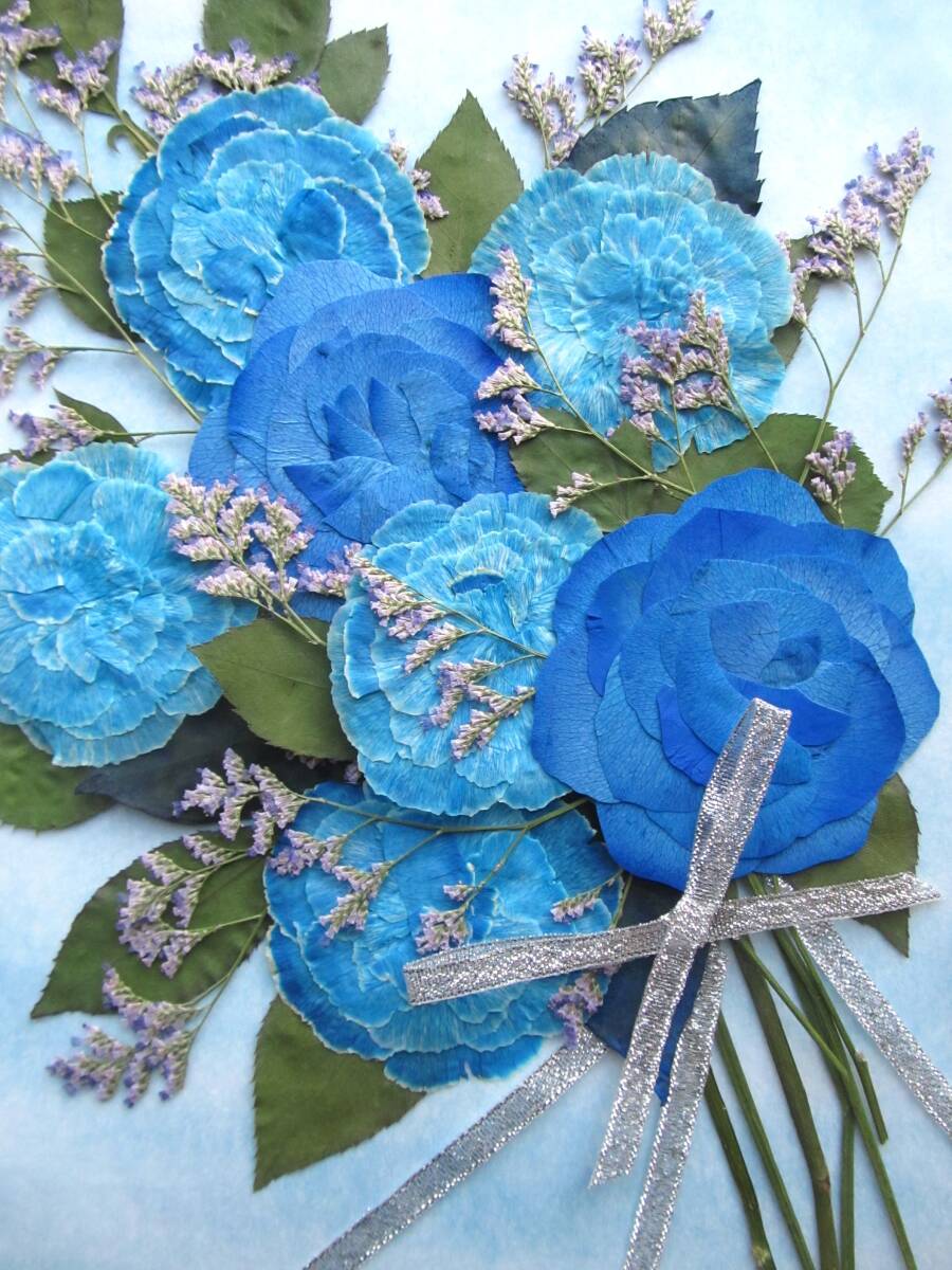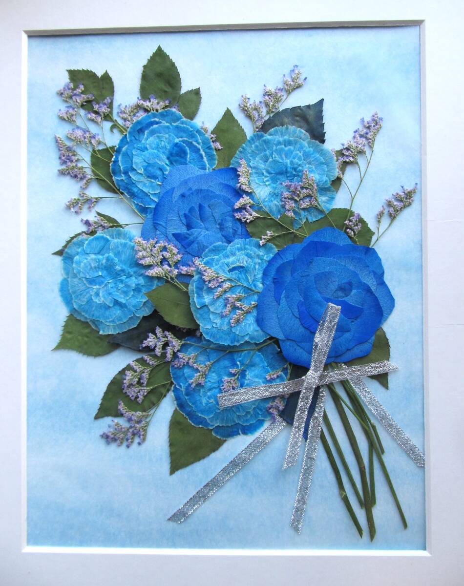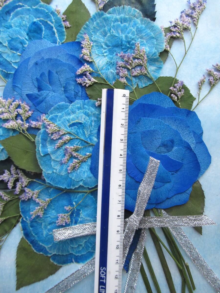 ☆押し花素材☆ブルー花束~バラ・カーネーション・ブルーファンタジア☆36サイズ