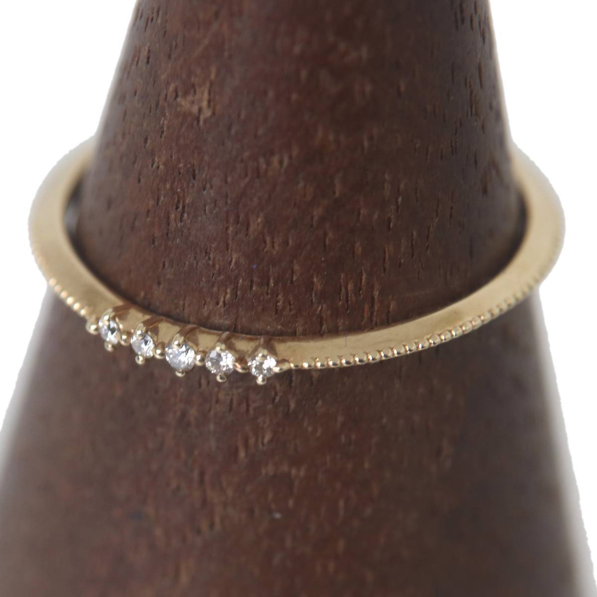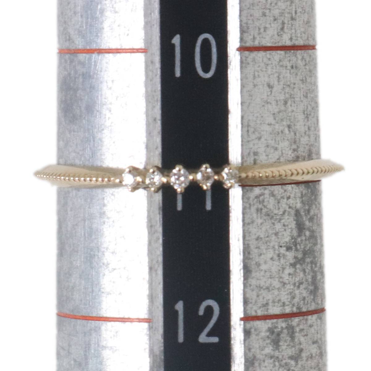| 【サイズ】 | サイズ:約11号 幅:1.1~1.6mm ダイヤモンド:0.02ct 重量:約0.80g ※サイズはマイクロメジャーおよび一部アナログメジャー(1mm目盛)で測っておりますが、実寸目視確認のため多少の誤差はご容赦くださいませ。 |