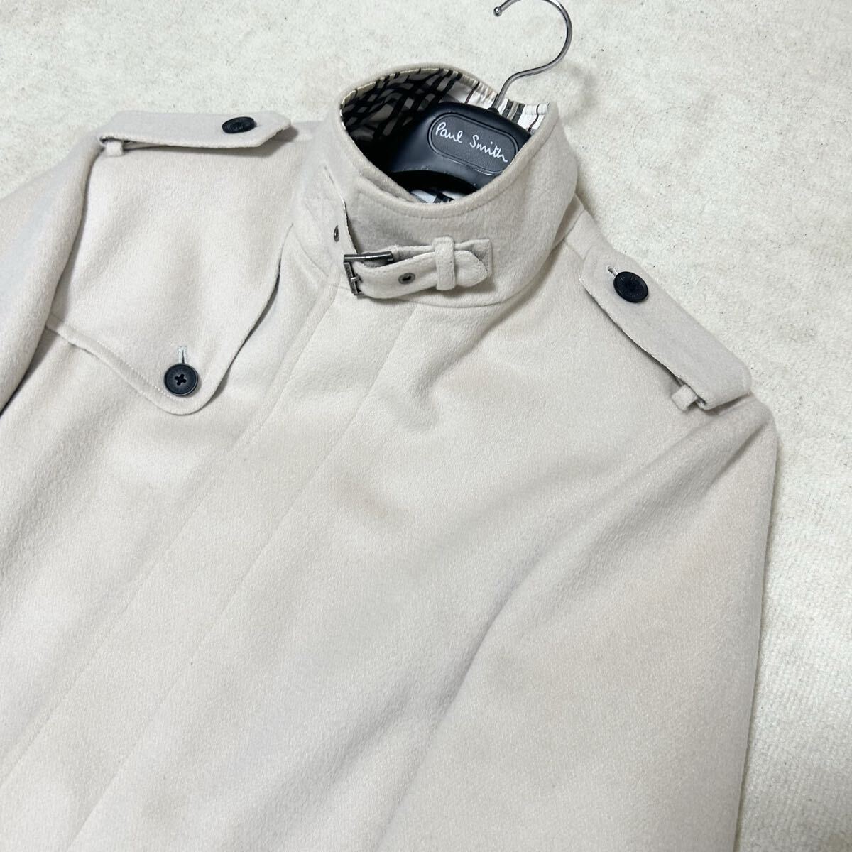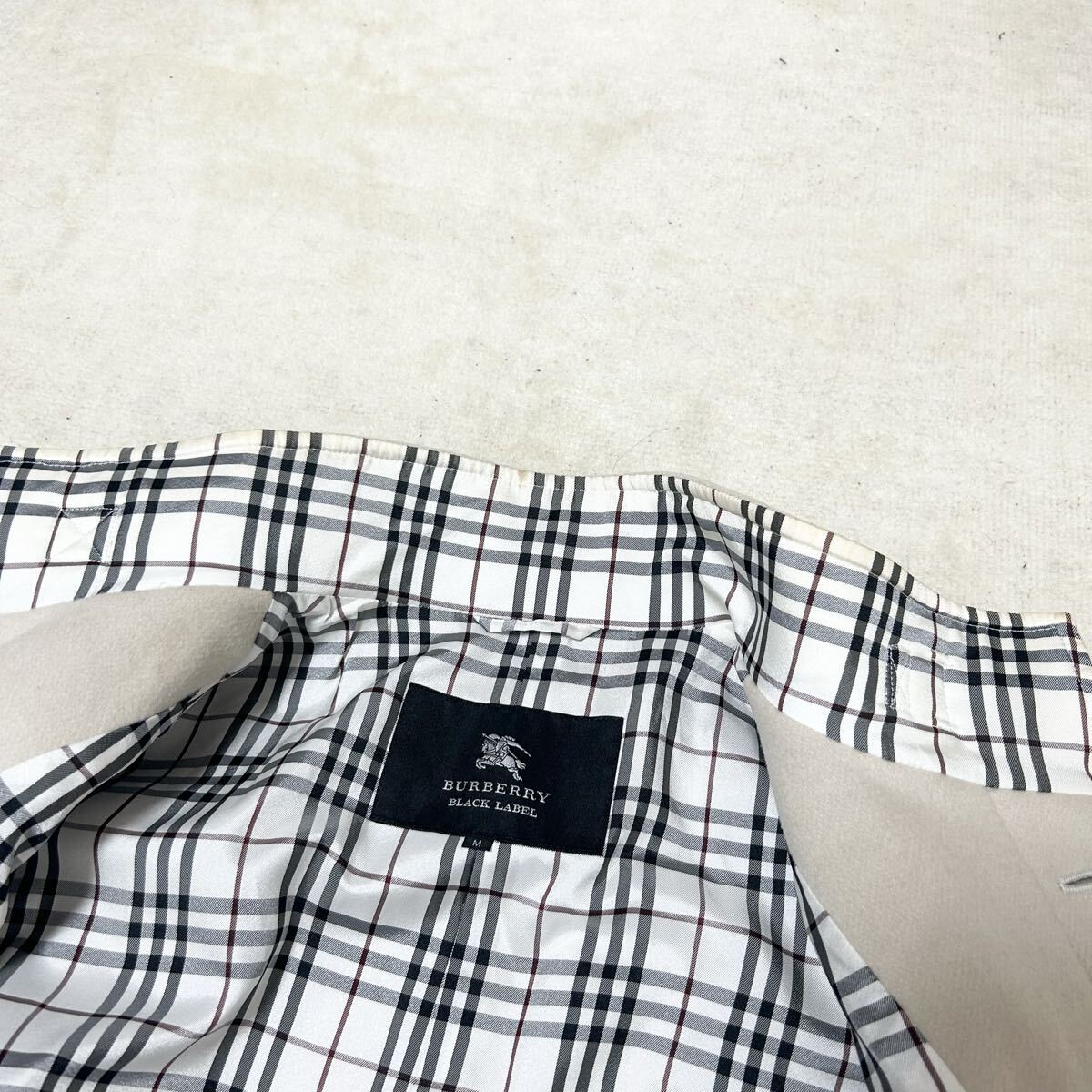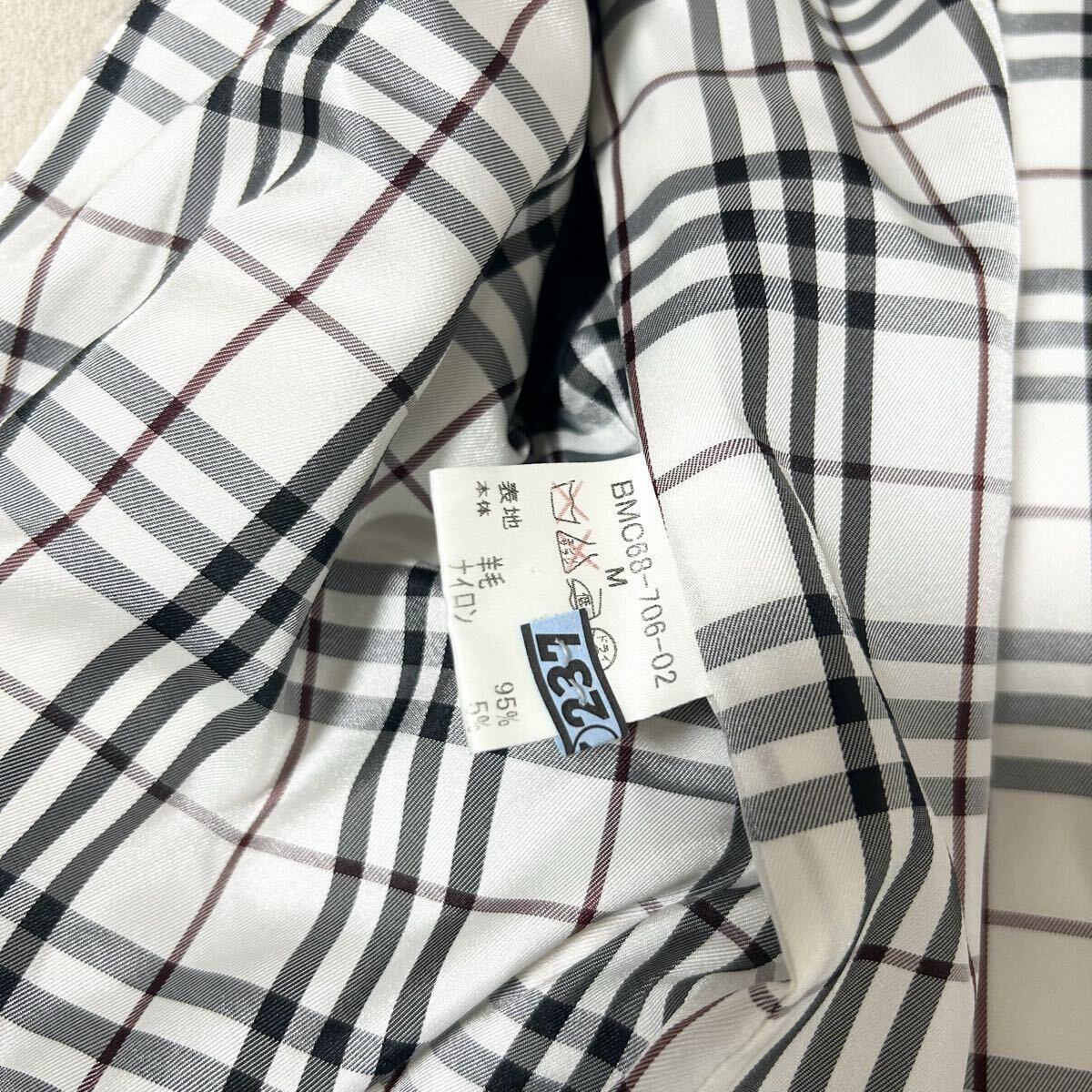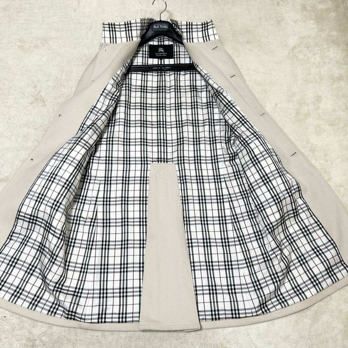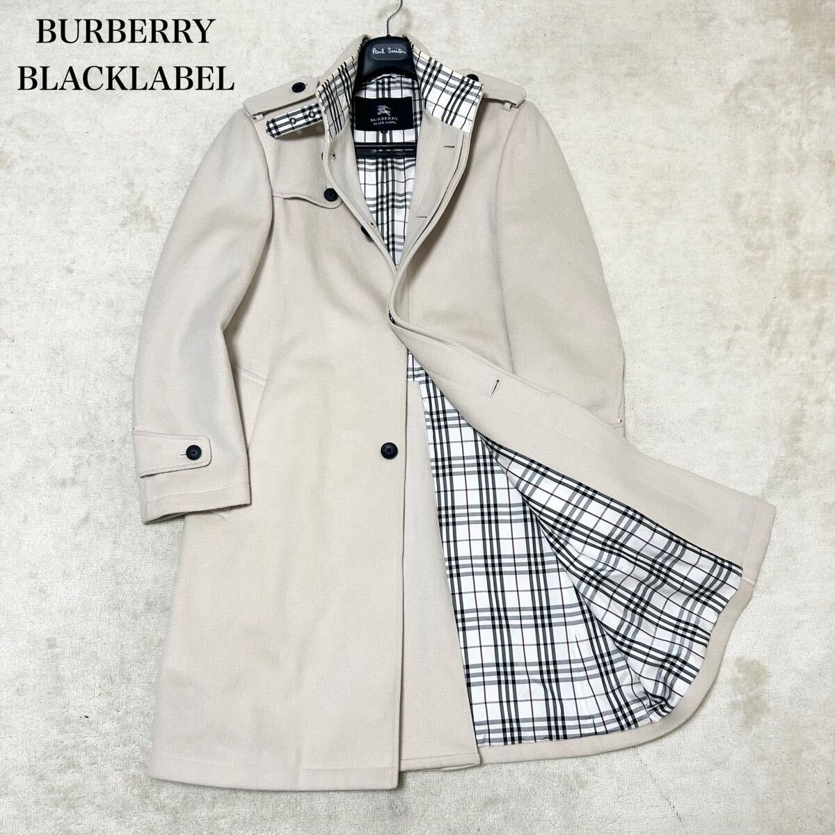 希少 バーバリーブラックレーベル ウールステンカラーコート ノバチェック 比翼 白