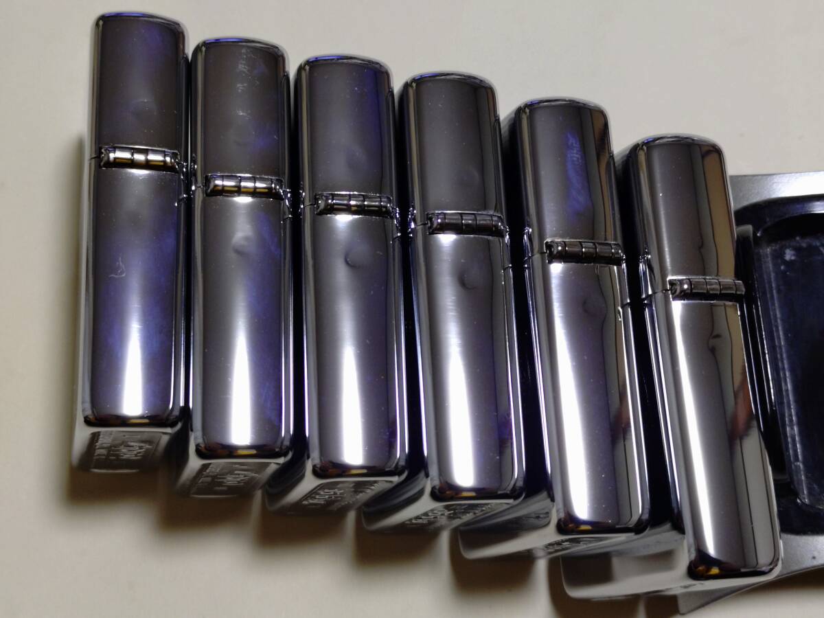 エッチング加工のZIPPOで、6個セット、同じデザインのピンバッジ付きの商品です。