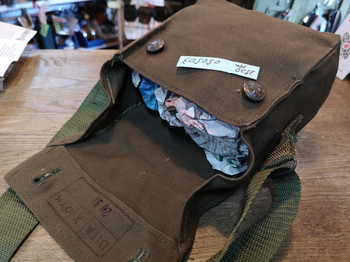チェコ軍にて採用されていたキャンバスショルダーバッグ スモールです。5枚目までの画像は流用です。 マチが広いコロンとした形が特徴的な小さなバッグで、スマホや財布、ハンドタオルなど必要最低限の荷物を入れて持ち歩くのにちょうど良いサイズ感です。 生地はコットンキャンバス製で中は仕切りの無いシンプル構造になっており、ショルダーストラップはナイロン製で長さを調節できます。フタを留める2つのボタンはチェコ軍の双剣マークが刻印されています。。 サイズ:H約16cm × W約18cm × D約11cm ショルダーストラップの長さ 約75から135cm 素材:コットン 状態:デッドストック 沖縄離島を除く全国元払い500円でお送りいたします、落札価格にプラスでお願いいたします。