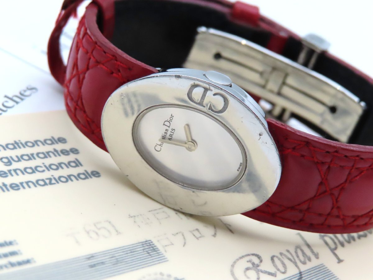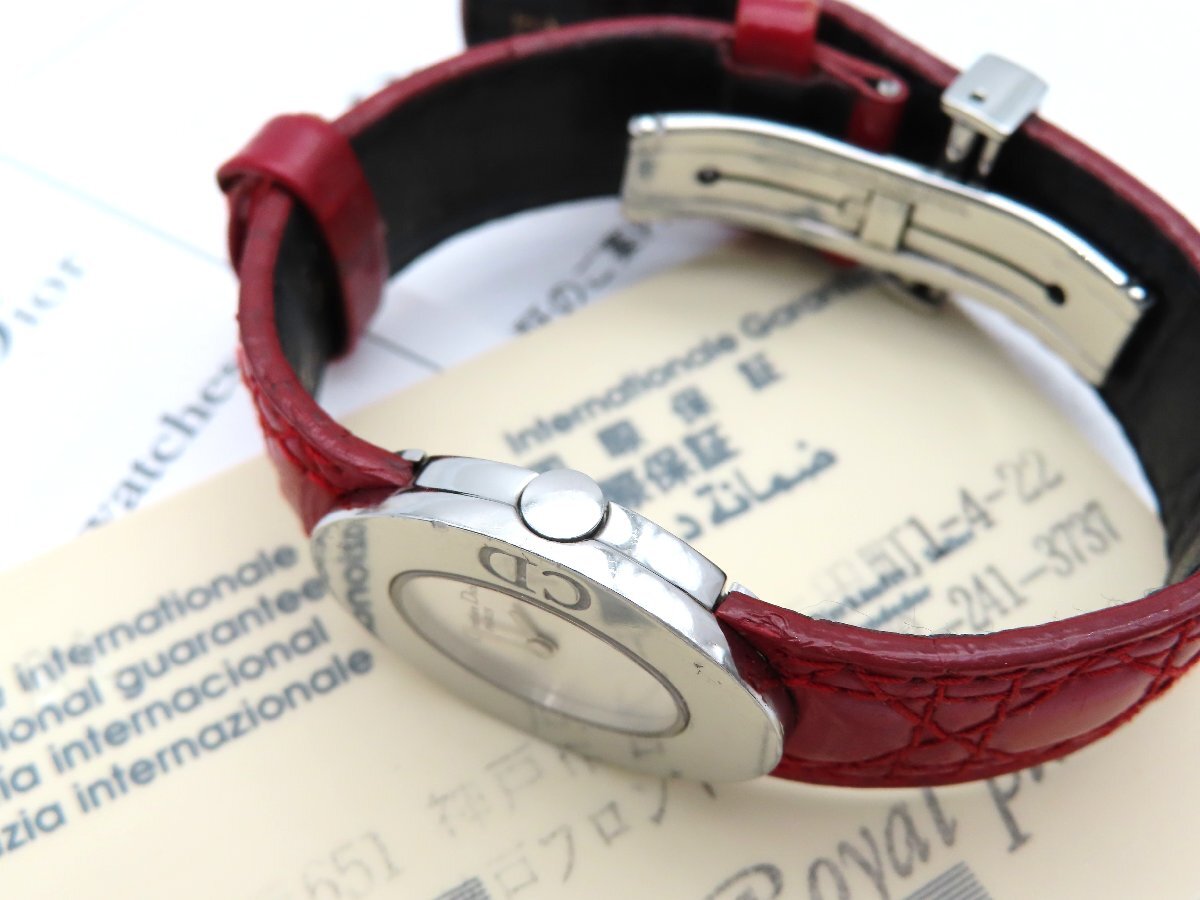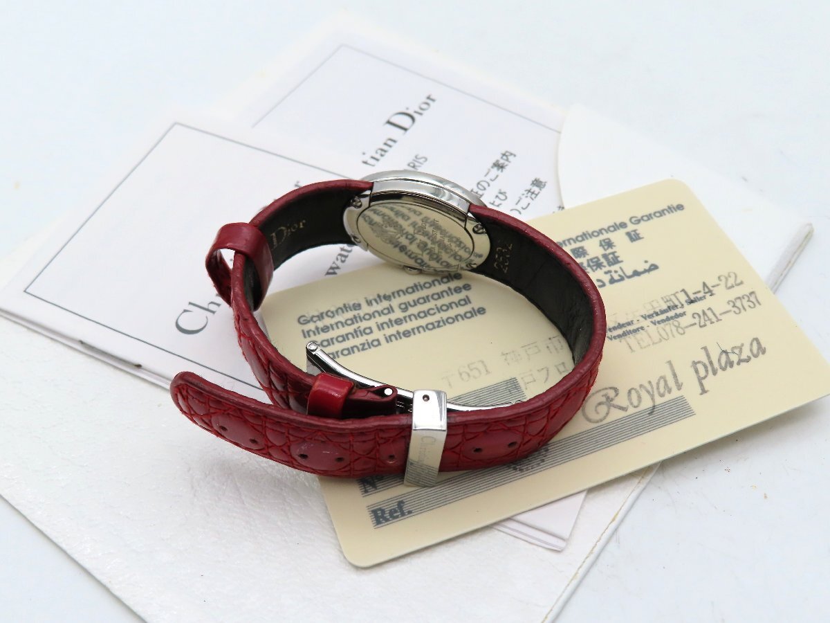 1円 ディオール D90-100 レディディオール SS/革 シルバー文字盤 レディース 稼働 QZ 保 28373 LP