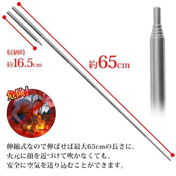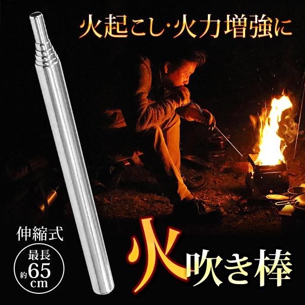 火起こし 吹き棒 ステンレス鋼 火力を強くする アウトドア 道具 送風 伸縮 最長約65cm キャンプ 焚き火 暖炉 防災 送料無料 50K◇ 吹き棒