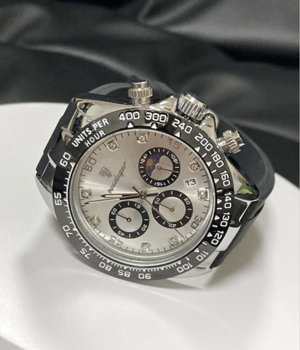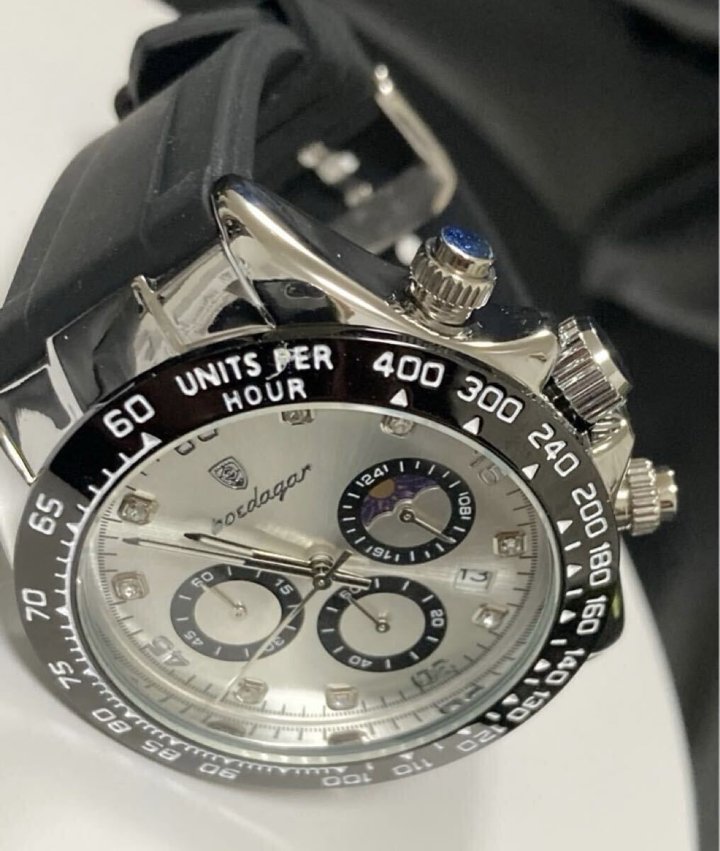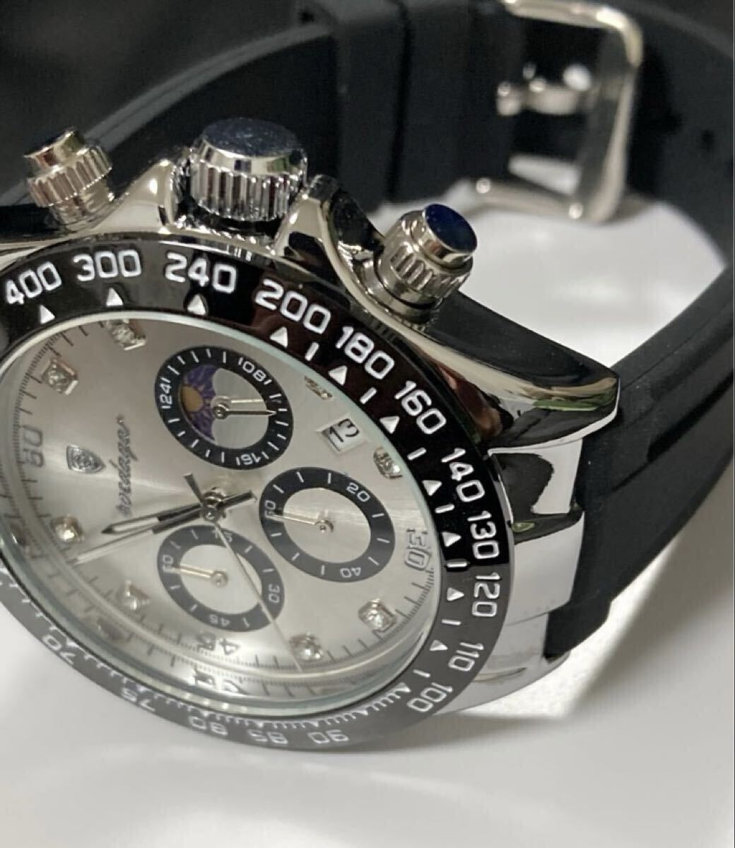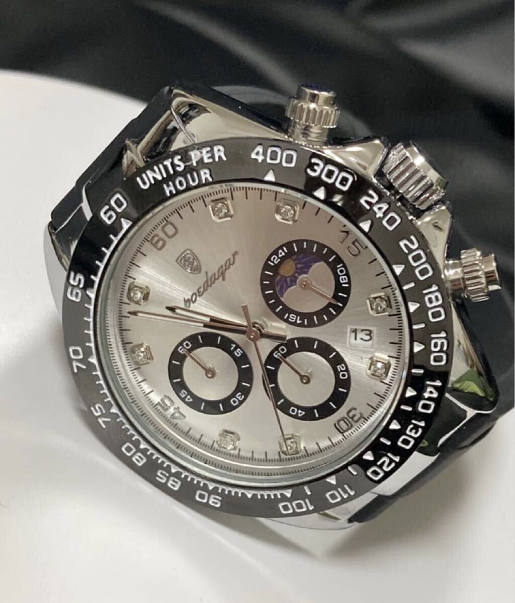 新作 メンズ腕時計 ビジネスウォッチ スポーツ腕時計 シルバーブラック ストップウォッチ ジルコニア