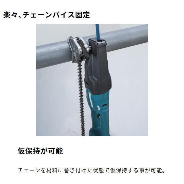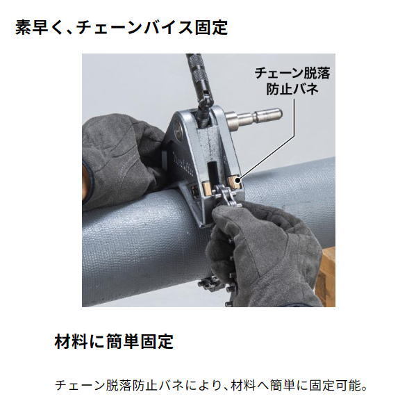 仮保持が可能 ・チェーンを材料に巻き付けた状態で仮保持する事が可能。