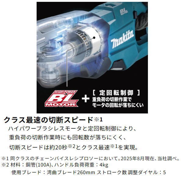 ※1 同クラスのチェーンバイスレシプロソーにおいて。2025年8月現在、マキタ調べ。