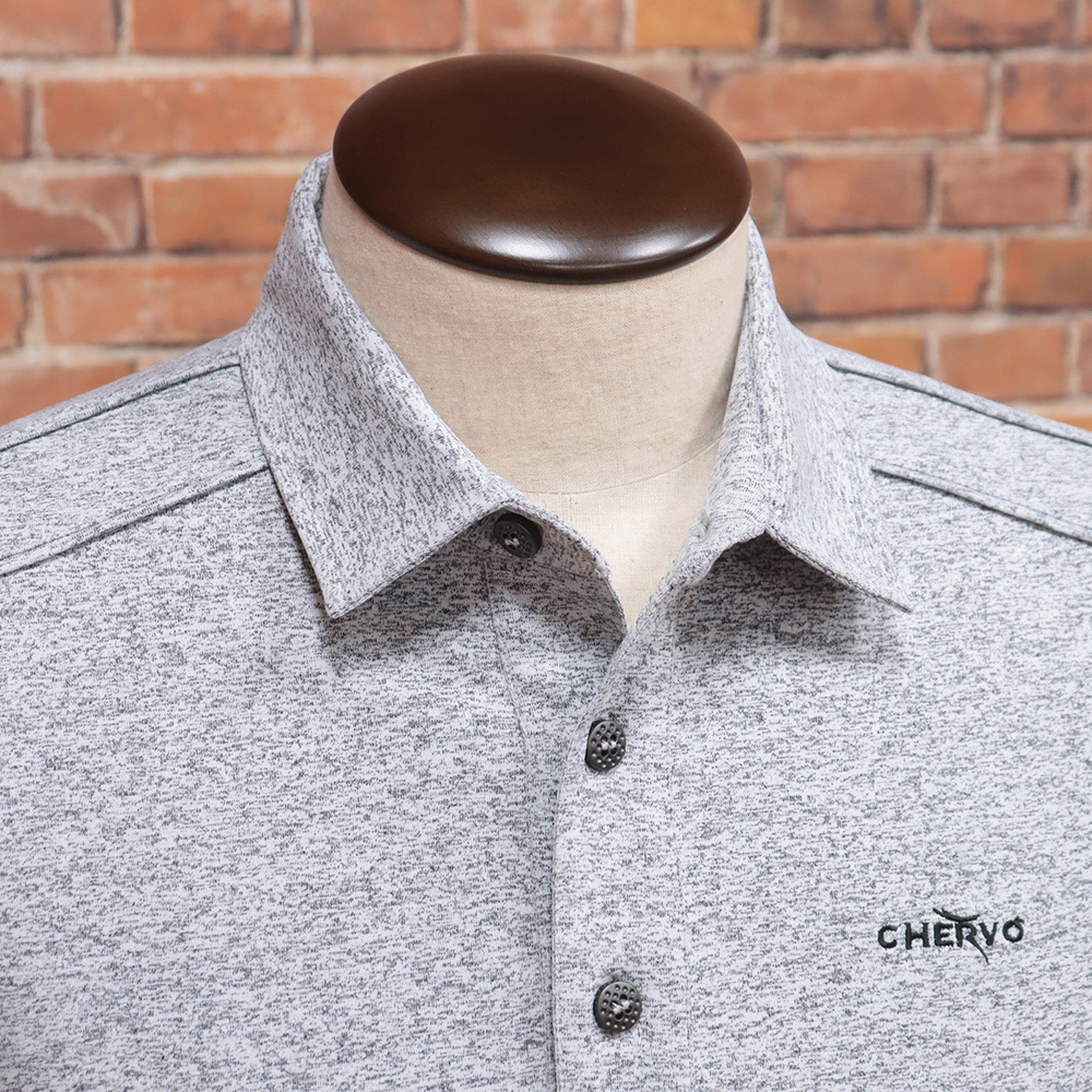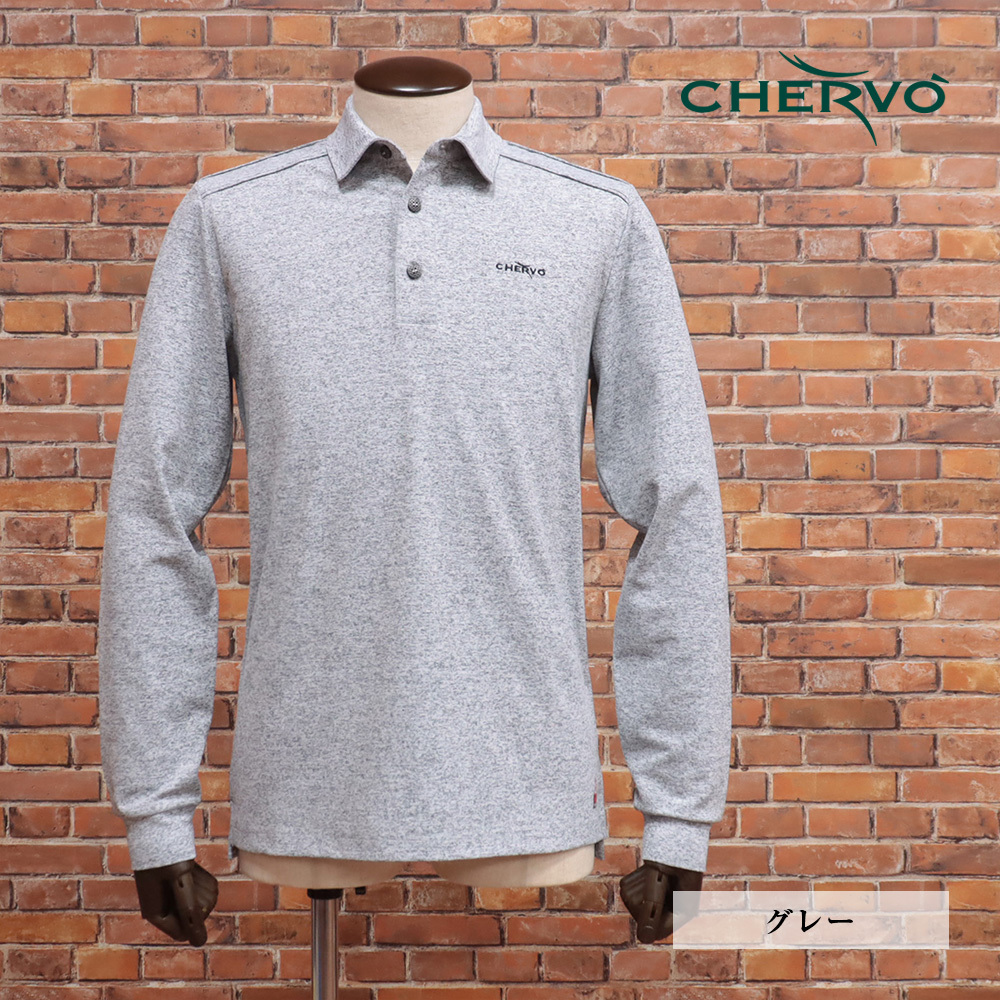 1円/CHERVO/50サイズ/長袖ポロシャツ ABDUL 快適ストレッチ 速乾 メランジ シンプル ゴルフ シェルボ 新品/グレー/md127/