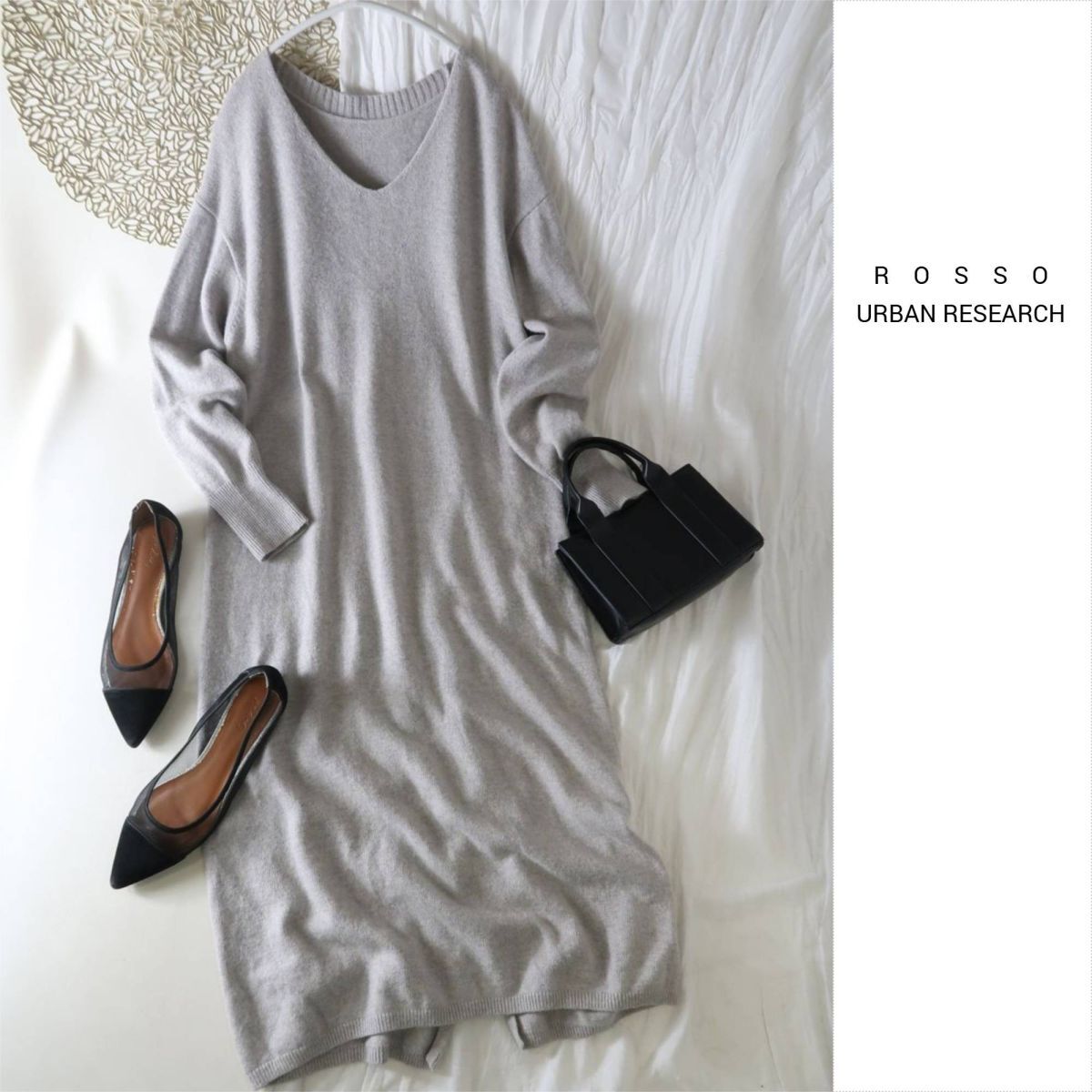 1.4万☆ロッソ ROSSO/アーバンリサーチ☆洗える カシミヤ混ラムウールVネックニットワンピース Fサイズ☆M-B 5962